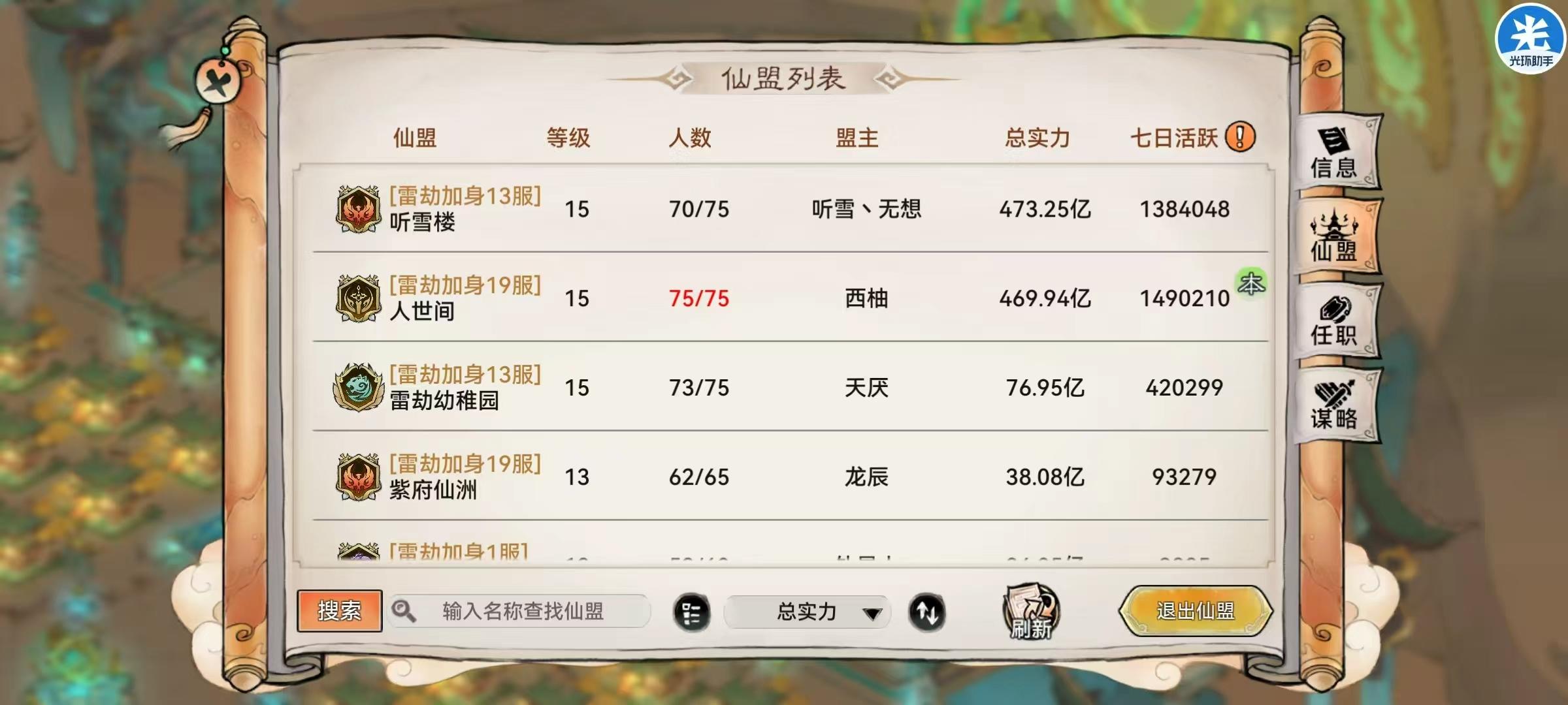 雷劫加身 · 诚邀各位 如果你累了,欢迎来「雷劫加身」歇一歇。 这里没有无休止的纷争,没有冰冷的排挤,没有让人窒息的内卷,只有一群温和友善、互帮互助的同路人。 我们大区有听雪楼和人世间两大仙盟,彼此扶持,亲如一家,不会让你在选择阵营时左右为难。 这里的大佬温柔且耐心,又肝又氪,却从不恃强凌弱,榜单荣誉共享,资源福利共分。 山海可以安心躺收,拍卖没有恶意竞价,高级仙虚有人全程带飞,不用