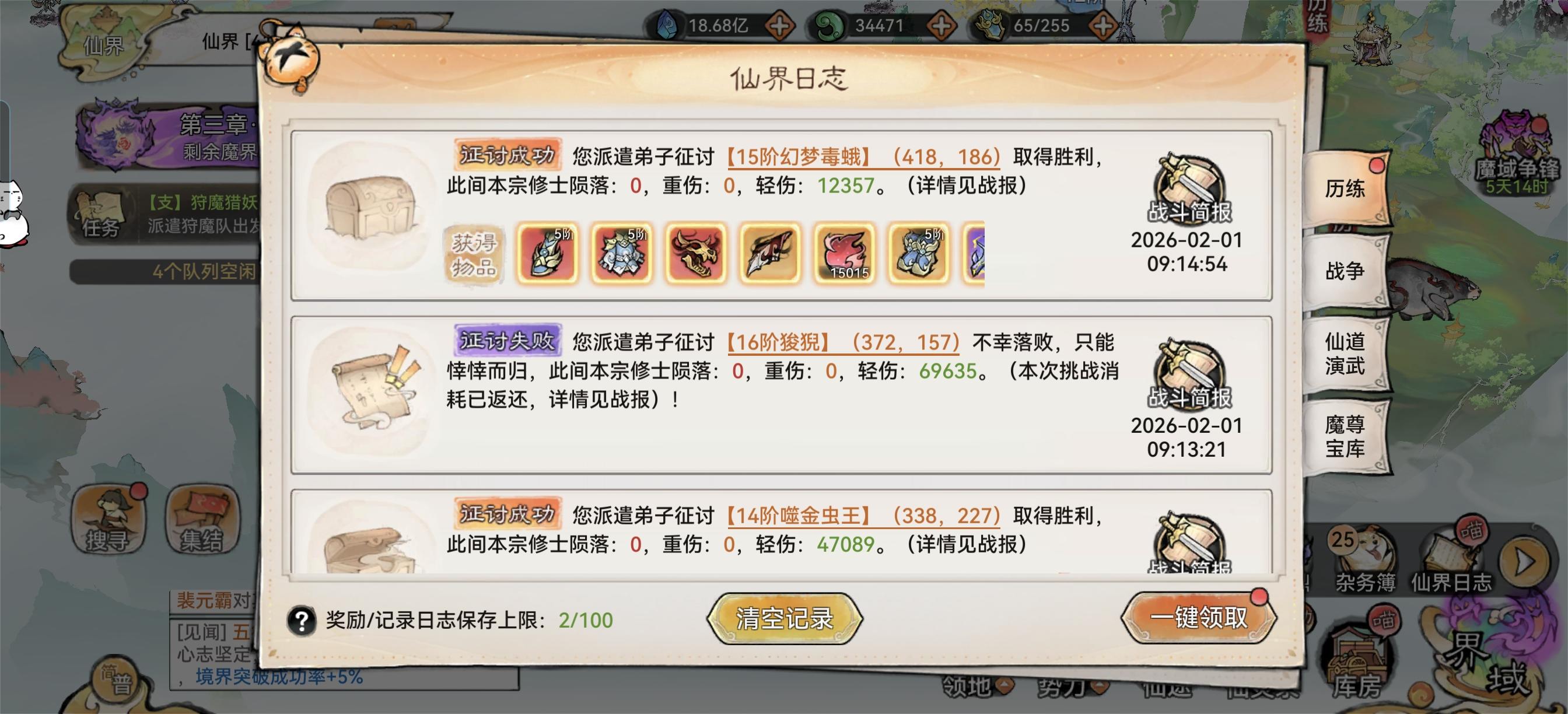 这周有点懈怠了,下周继续努力,争取让盟友一周白嫖12000玉!策划能不能加一加日志上限,求求了!