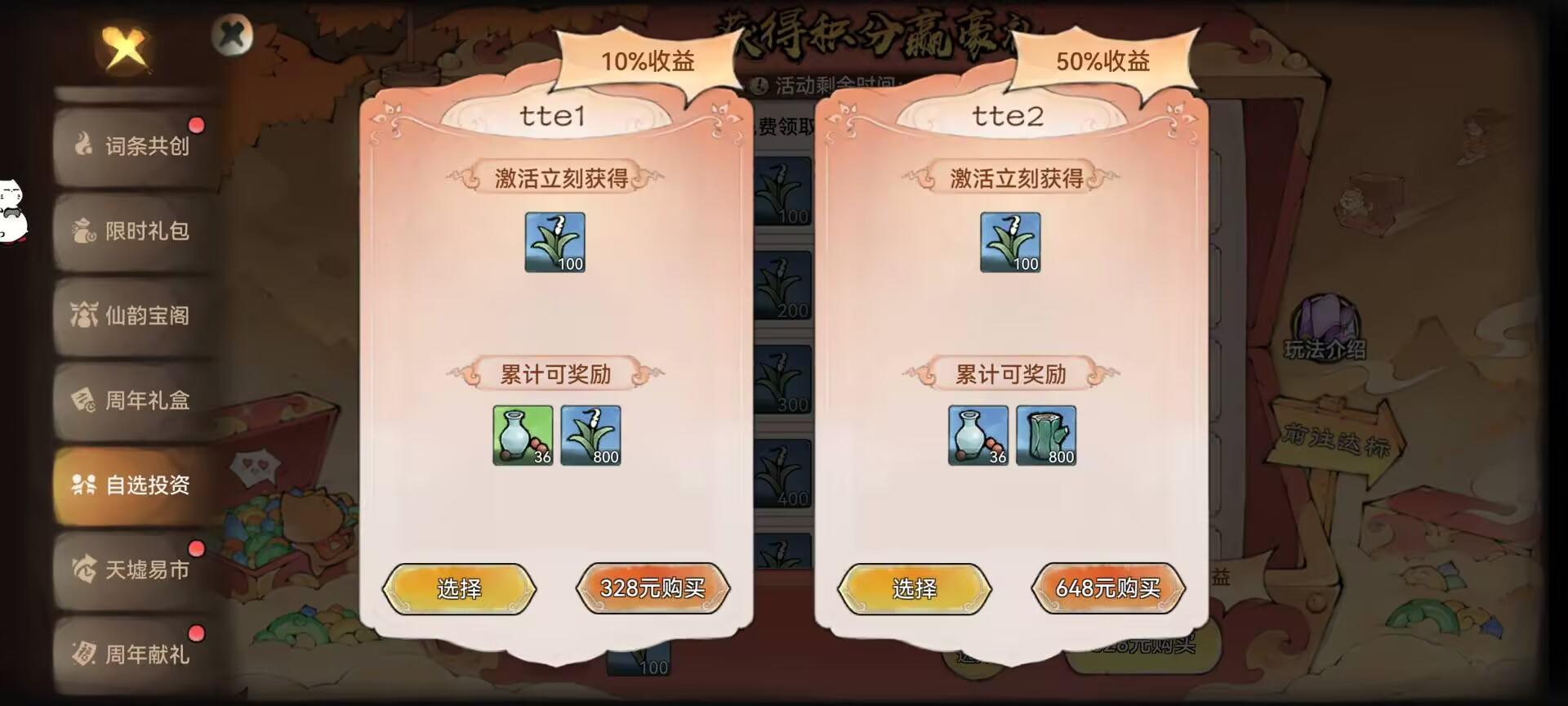 刚34级开了本命法宝,这个蕴养有礼有没有必要炼个二阶本命去做?用没多久换三阶分解材料能不能全额返还?灵田的灵玉投资还有老道卖的玩意划不划得来?氪金的这个上级秘函性价比大概什么级别?