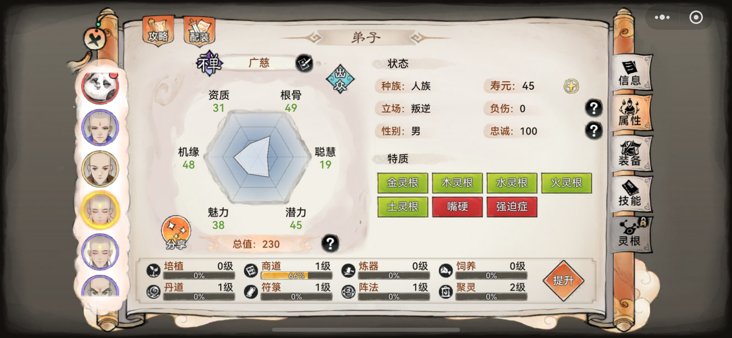 刚玩了12天,功法换来换去的,不知道遗忘功法居然不是100%返还传道点数。损失好几百万传道点数。这几个人现在这样搭配功法可以吗? 现有功法就图上这些
