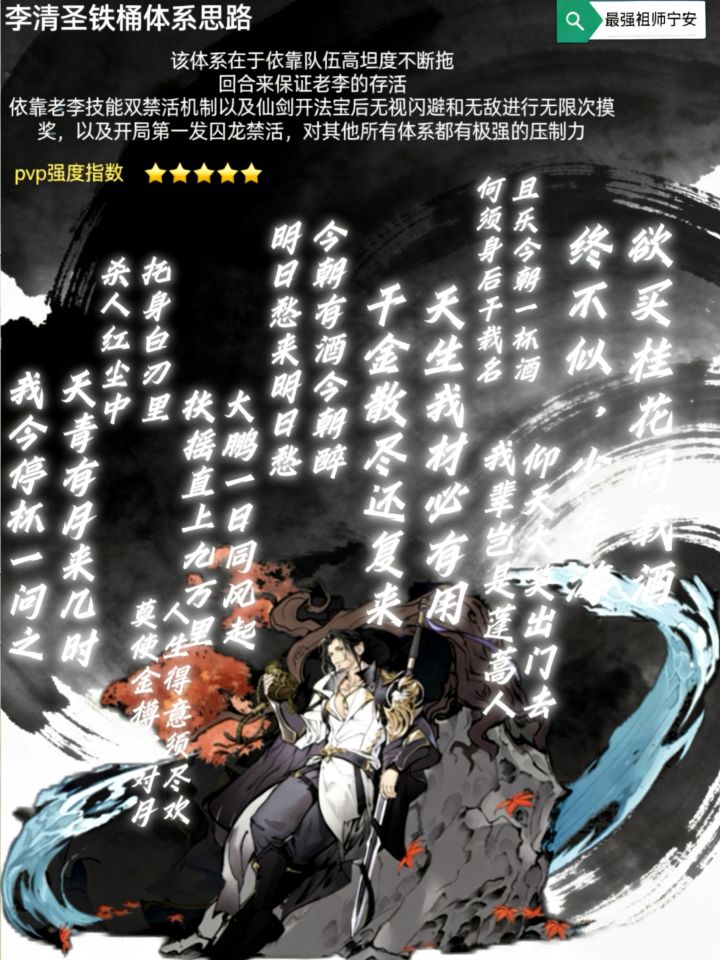 #游戏攻略 有人问upup,精氪能不能玩好李清圣体系?我开局没看攻略抽了老李,但我还想玩李清圣有没有办法?有的兄弟,有的学会这手T0李清圣体系可轻松同战无敌以及越战△ (抽取顺序以及站位在结尾)弟子养成 🔴1、李清圣培养(二阶天命觉二开启强势期)转仙,双龙阵,修罗套,词条主攻击副爆伤暴击率功法:囚龙+青莲本命法宝:无常,主高阶木用四阶铁技能灵根:变异木系灵根,洗对应技能秘藏,变异风