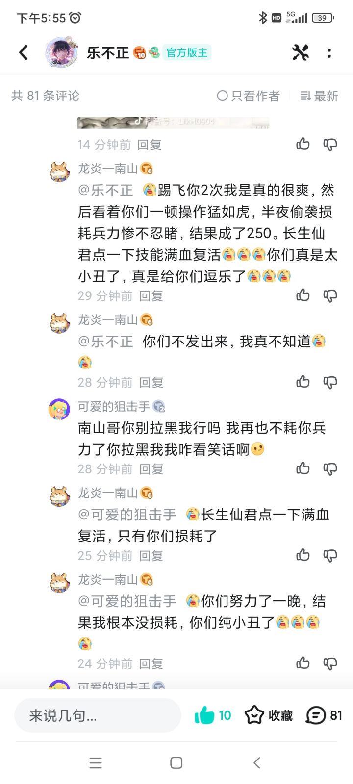 本不想蹭顶流热度,奈何顶流发帖,并在我贴底下进行回复。也有很多仙友想吃瓜,我就多发几个贴。顶流本来就和幻海仙域有仇怨,经常开贴小作文diss幻海和其他仙域。我虽然作为版主,但是并不管他发帖。我删帖一直是只删广告和脏话。顶流发布越战五万t0黑科技,灵山被我一脚踢死,然后借号进行他的传统艺能-仙界偷袭,借的号是自己原本仙域高氪大哥送他玩但被他卖掉自己美美得金币的号。(只能说高氪大哥