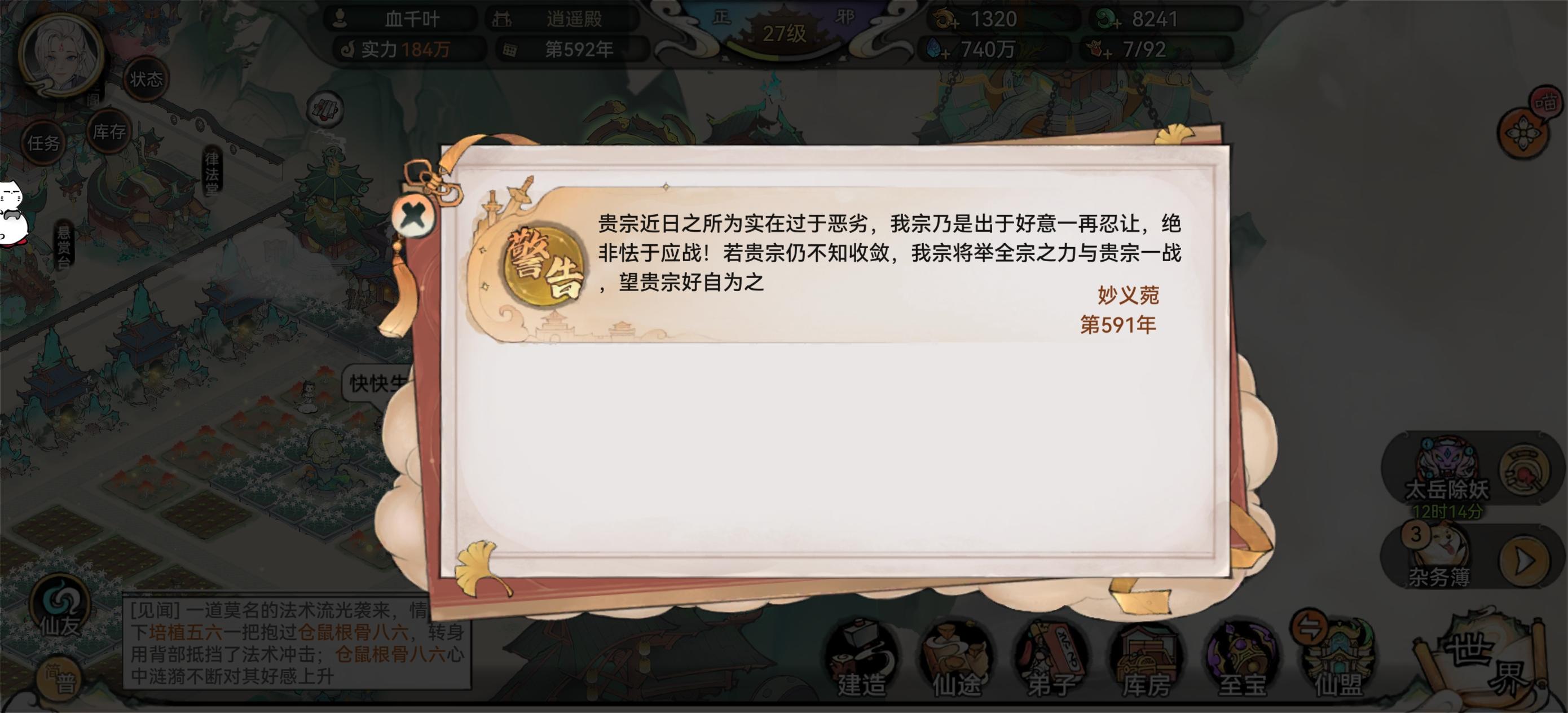 逮着一个宗门抓,来信两次了我看32级才开启宗门宣战还想问问,大佬们刚开始玩的时候宗门要送礼吗,感觉资源不够啊目前是只给仙友送礼