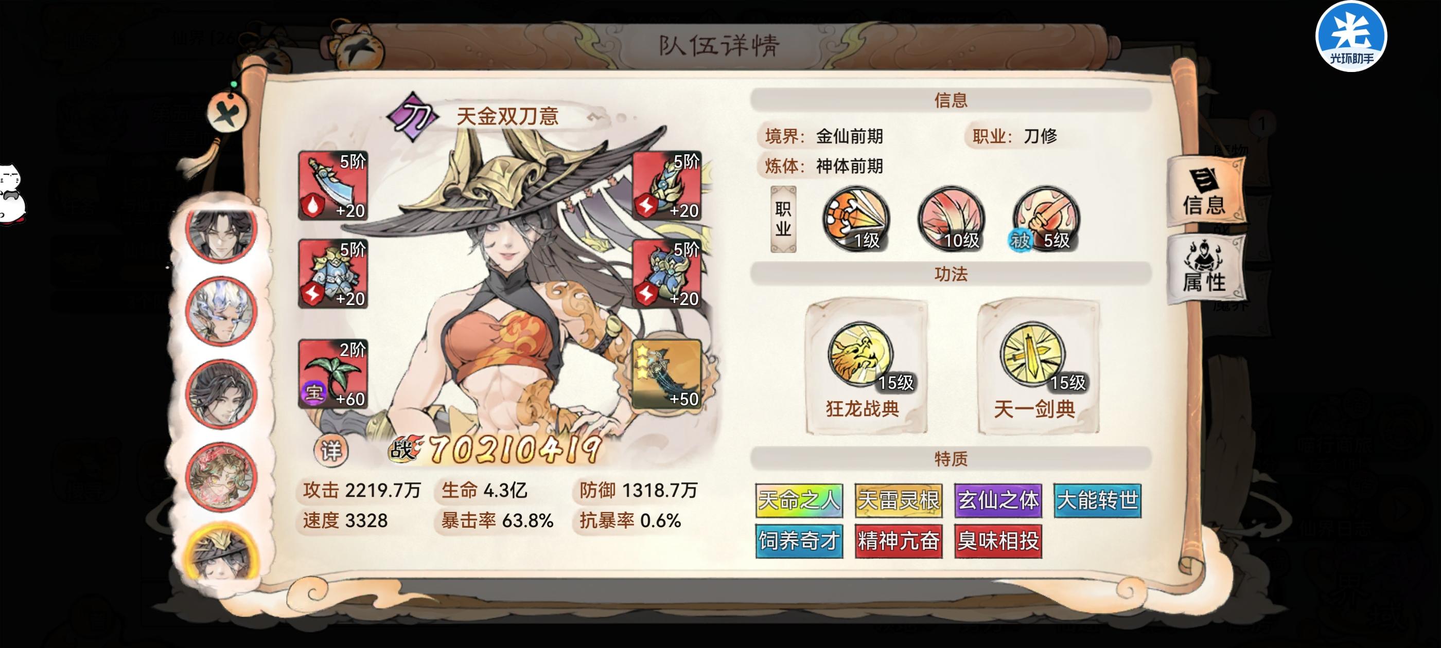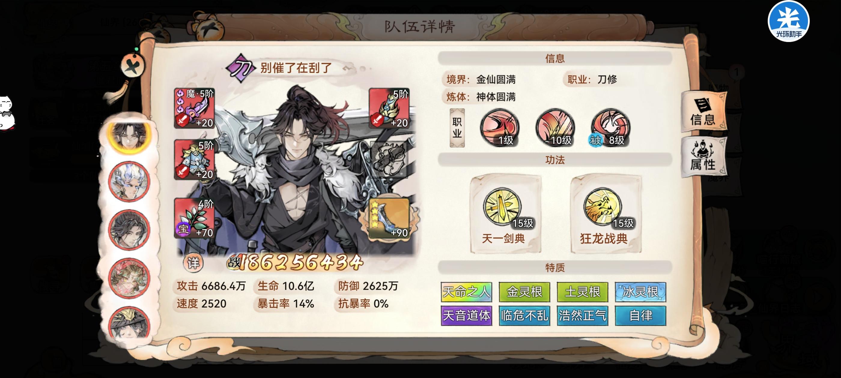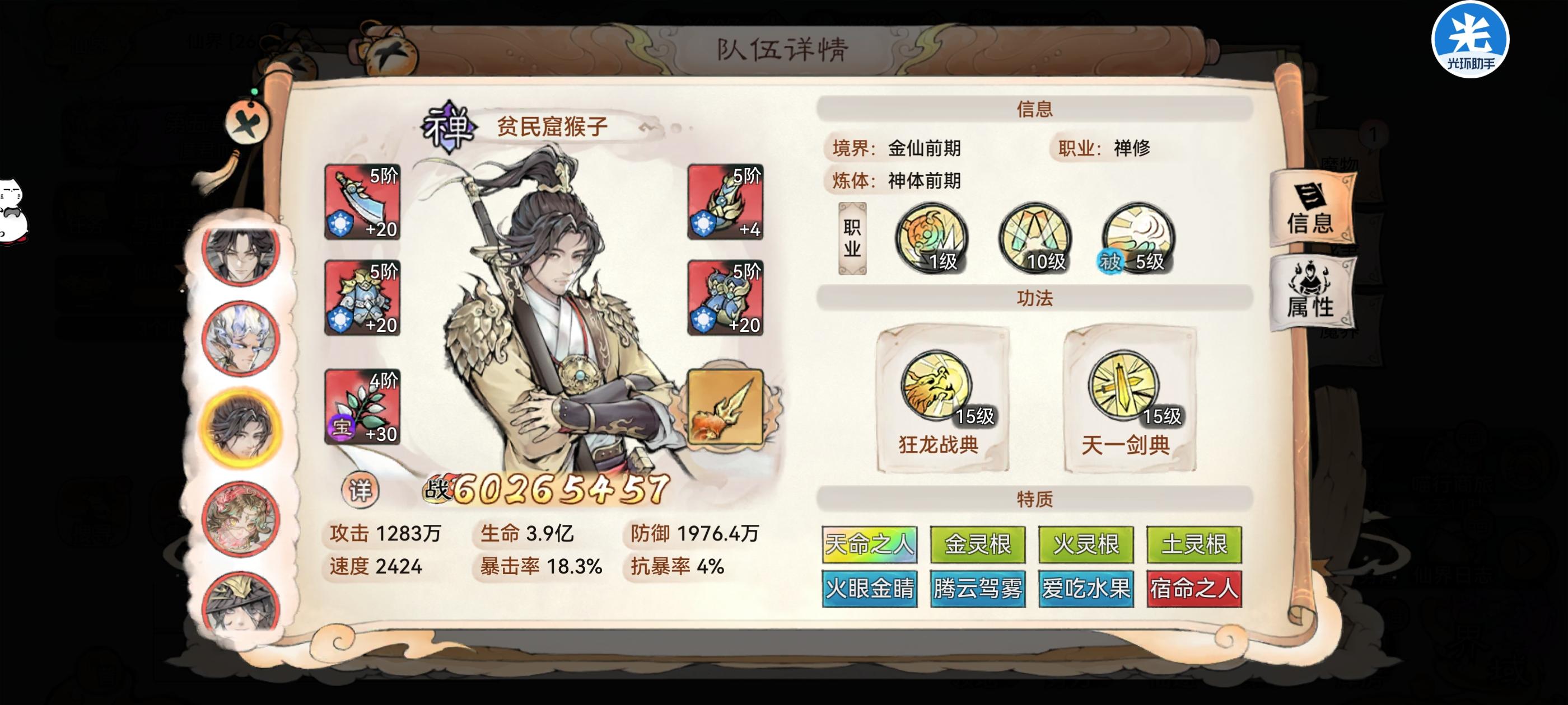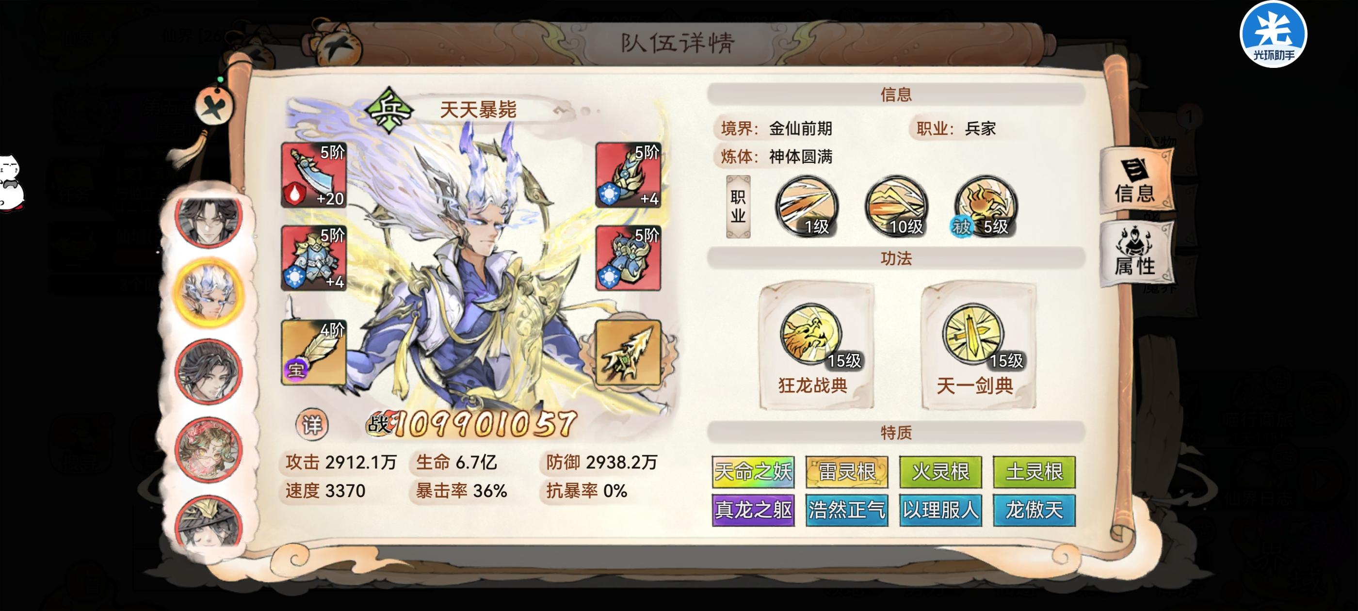 #游戏攻略 有人问upup,精氪能不能玩好李清圣体系?我开局没看攻略抽了老李,但我还想玩李清圣有没有办法?有的兄弟,有的学会这手T0李清圣体系可轻松同战无敌以及越战△ (抽取顺序以及站位在结尾)弟子养成 🔴1、李清圣培养(二阶天命觉二开启强势期)转仙,双龙阵,修罗套,词条主攻击副爆伤暴击率功法:囚龙+青莲本命法宝:无常,主高阶木用四阶铁技能灵根:变异木系灵根,洗对应技能秘藏,变异风