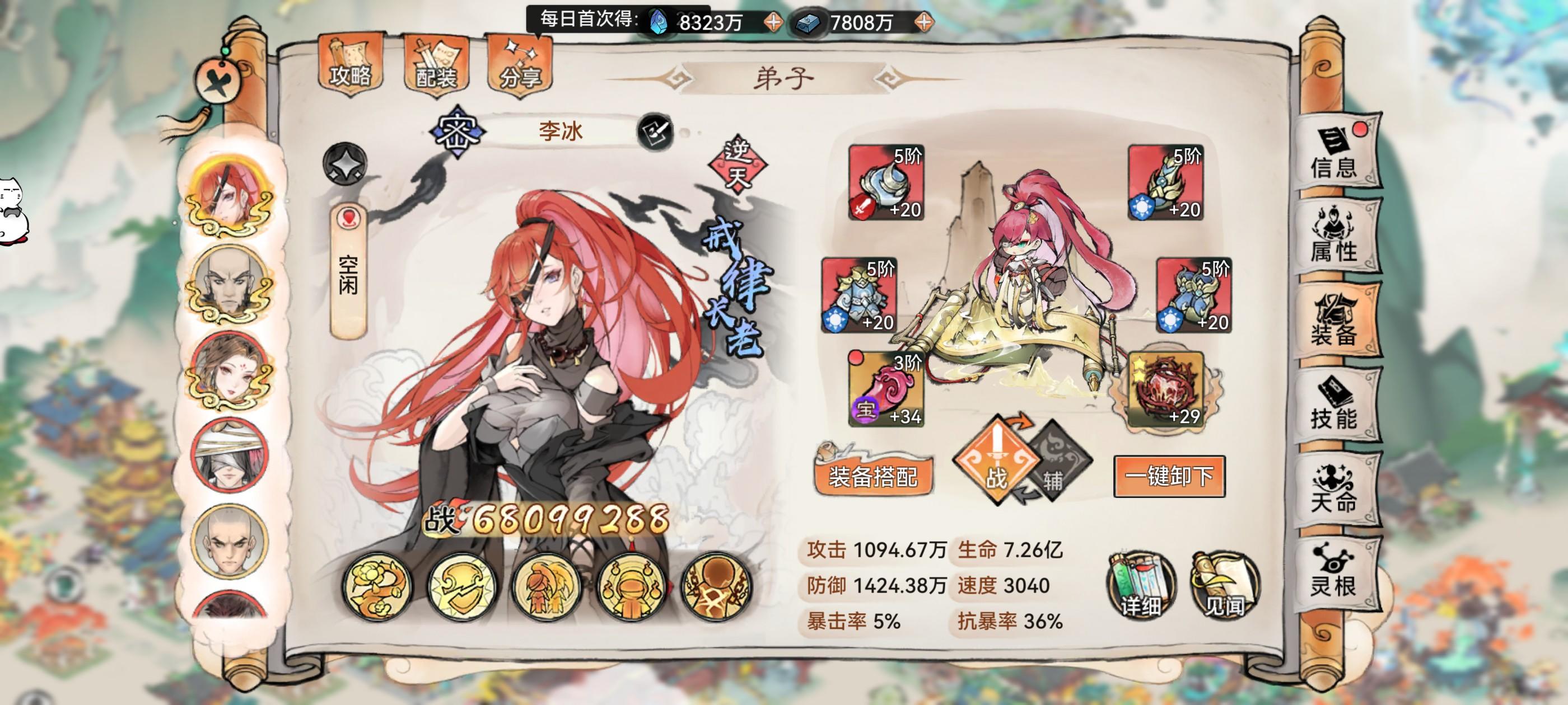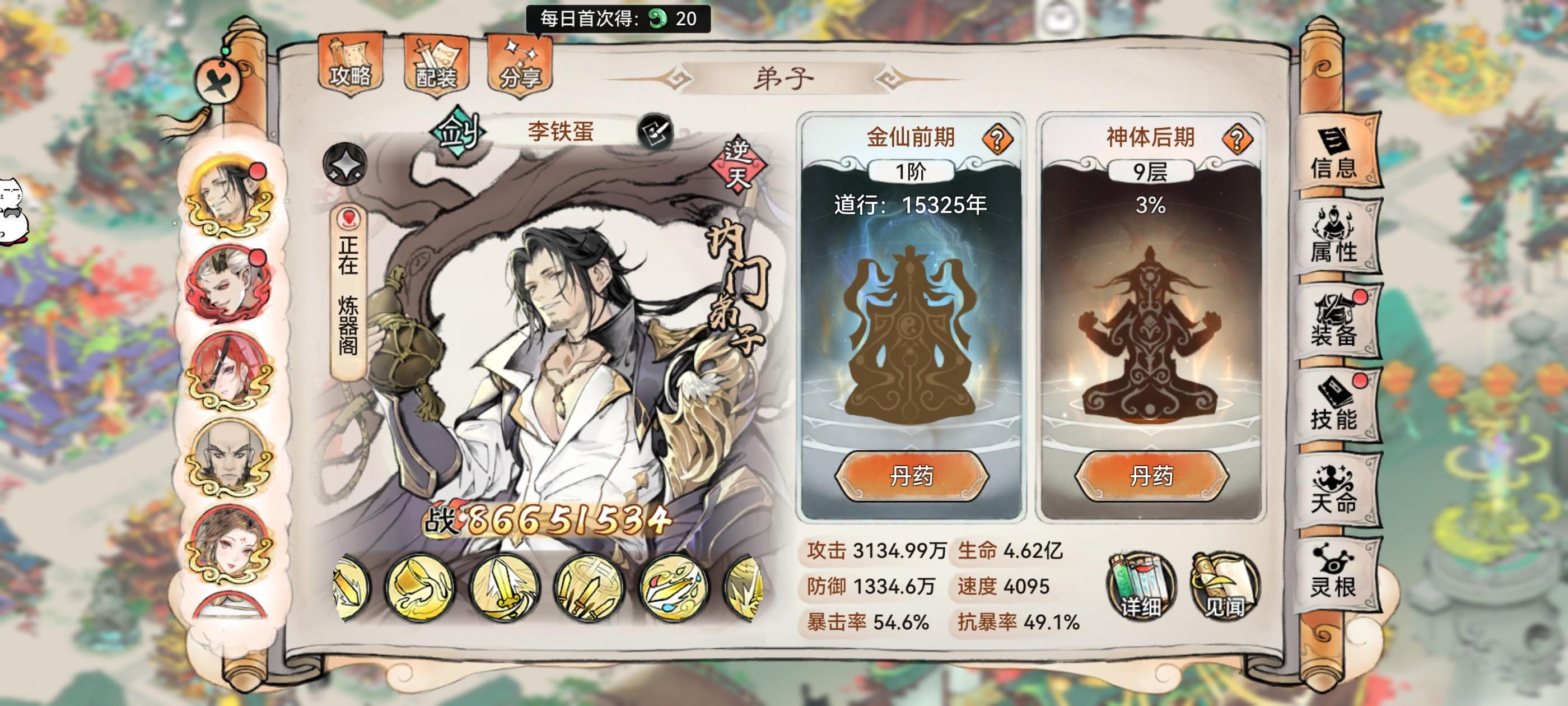 没珍珠了,差两个炼化上100+生命值,话说祖师也真是,提升法宝蕴养等级的上限,不给获取途径增加。