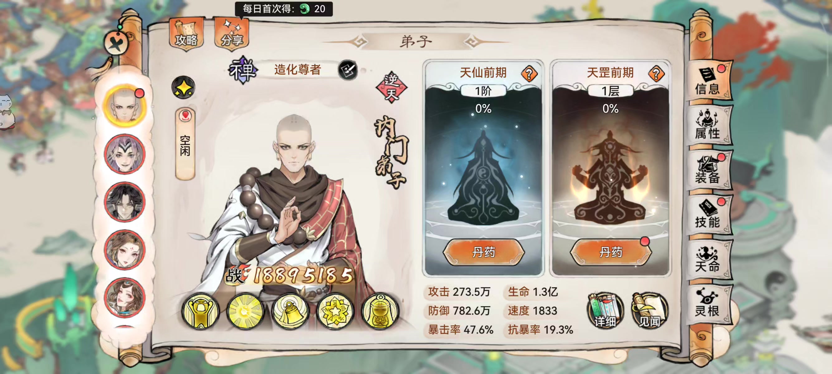 拜托大家帮我看看,我录屏的内容。弟子从天仙一阶吃药吃满一级之后,还是天仙一阶,这个是bug还是大家都这样?系统设定?有没有懂得给解释下#最强祖师