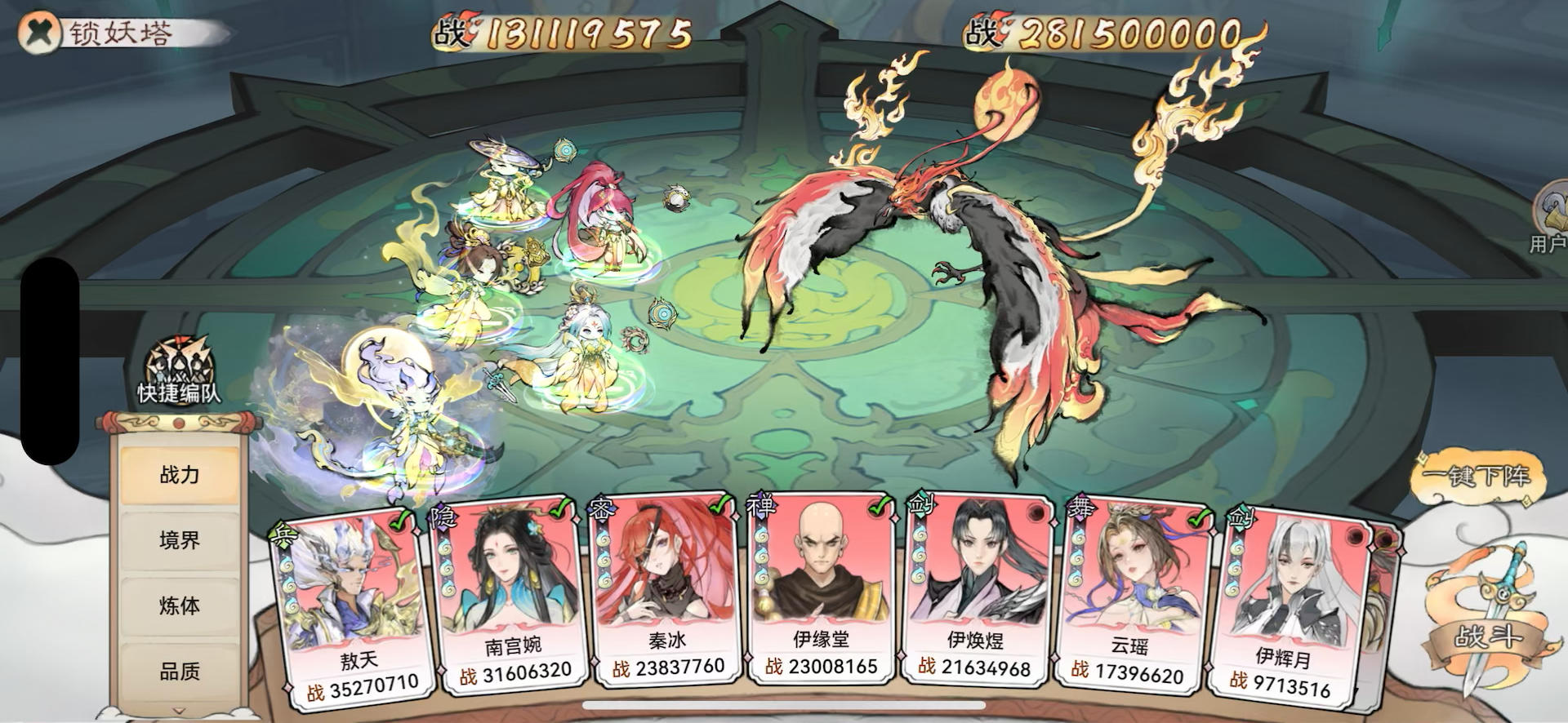 #游戏日常 飞升之后痧哥也是第一时间打开锁妖塔,把卡我的2900层boss老毕方,拎出来暴揍了一顿[表情_斜眼笑]。不需要任何技巧,多带点祛除减益的技能、法宝就行,四回合直接干碎。