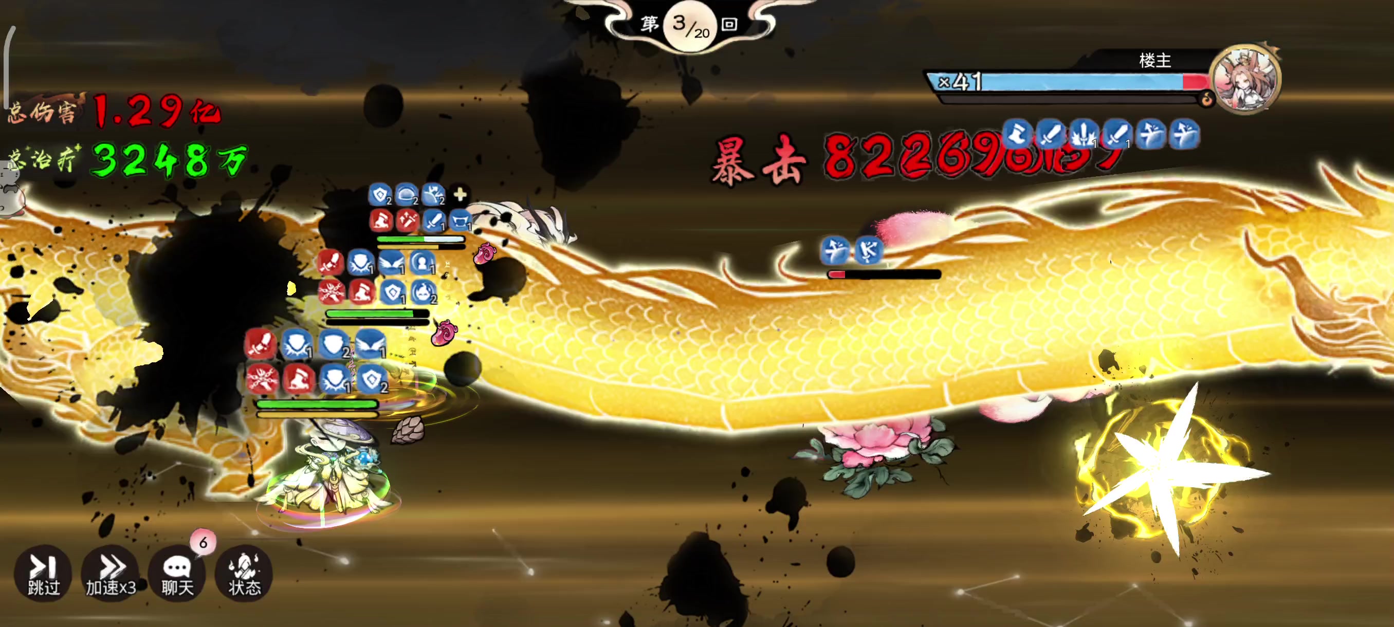 注:卫寒是水法宝,天一威力不高 细节: 1. C位和龙人站同侧 2.云瑶的神韵和两个火玉是用来清状态的 3.龙人的盗兵不用巨灵,盾太厚,压血不方便(面板如果再高一些,无视这一条)