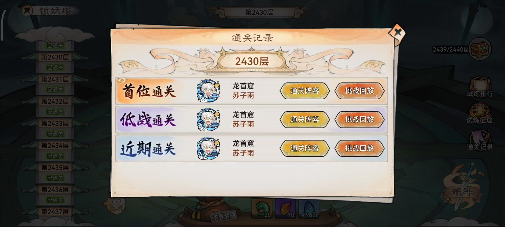 我我这个是水畏寒,天一伤害不算高,不过法宝带的叶子也可以补一些伤害。(冷知识,叶子也是无视防御的) 本层的要点就是多帮龙人复活,复活位比龙人快,一死就拉。