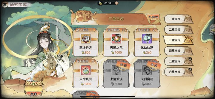 感谢摸鱼群里的大佬手把手指点: 大佬:月卡裆就溜着把每月的点化液,古宝,功法,混沌源气弄点就差不多没有了[吃瓜] 仙宫地库的法则阵石是给盟里这些囤资源可以拉本的换,拉本梯队想跟上,咬咬牙每个月200法则阵石必须优先换。 后面接引上来的盟友本拉不起来就,按照大佬说的,就换置顶那些提升自己。天道气还有途径可以获取(想做本命留好胚子等四阶法宝慢慢做吧,只有主c配吃红胚,新区拍卖行一个天道气600黄
