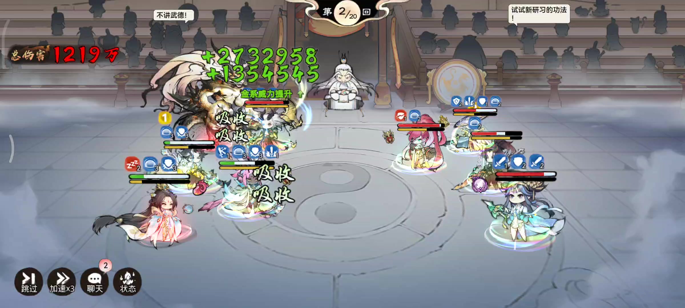 #最强祖师 带有赊刀效果的目标攻击带有反击效果的目标,反击不会生效。 如视频,卫寒放技能前,禅打银正常反击。卫寒给队友挂上赊刀以后,秦冰的技能和画的普攻,都触发不了反击#