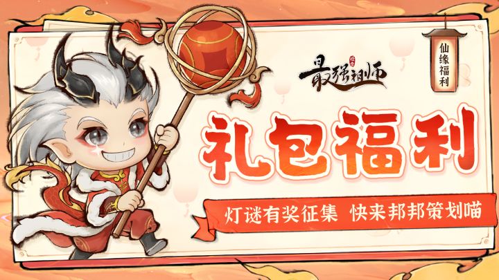 各位祖师元宵节快乐呀!猫子们准备了一份元宵节兑换码给大家,赶快来领取吧~元宵福利礼包兑换码:灯耀福元礼包内容:灵玉*200,灵石*20W,加速仙符*20有效期:2025/2/12~2025/2/28除了福利礼包,小清瑶也准备了福利抽奖!策划喵为了出今年的灯谜,头发好像又少了不少(T▽T)所以各位祖师快开下脑洞,一起来邦邦策划喵想下明年的灯谜题目吧~有奖征集【活动时间】即日起-