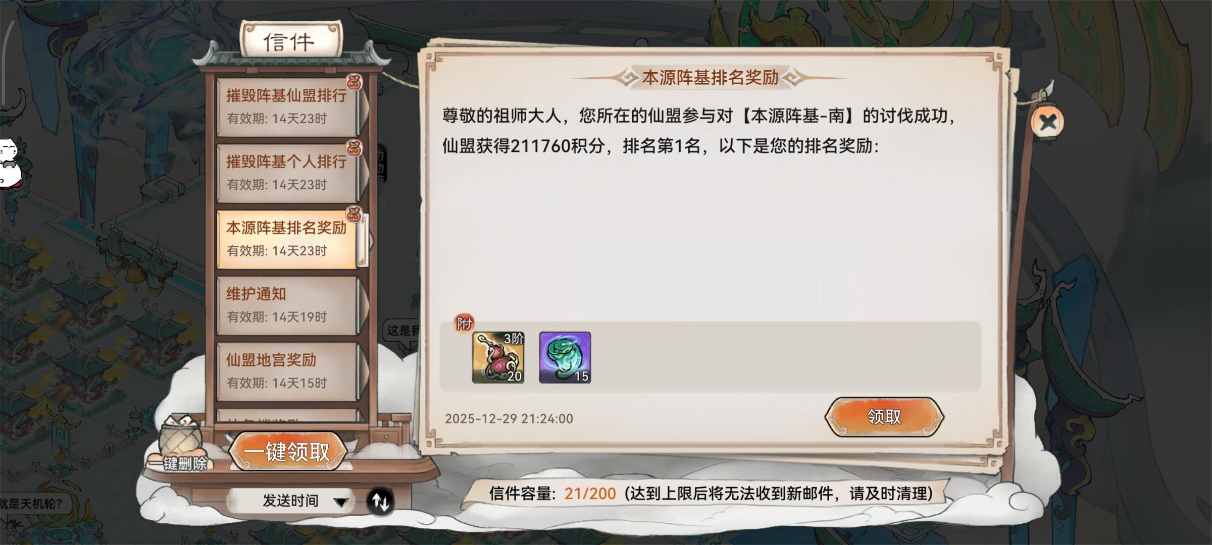 序言前提 新岁启宗门,法宝随心出,弟子速成才,魔界闯关一路开挂,战力飙升不停歇!各位道友们好,本期将简单介绍祖师第二赛季魔界—万相魔域前三章章节通关建议。本期魔界前三章核心打法:先集合破门→存体力速刷五行阵→每日速通本源柱→商店必换四阶材料自选箱,体力拉满、优先破阵,仙盟协同最大化收益。破关口摧阵基,祝祖师们魔界夺魁,仙魔自选箱拿到手软!1、第一章【攻破关卡】流程与核心要点(1)攻破关卡目标