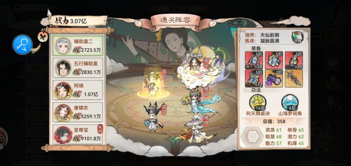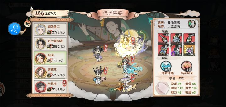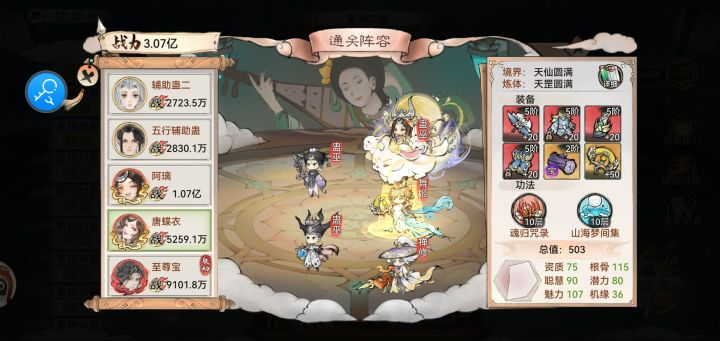 阿离/烟花山海 败芒套 本命道兵 无常胚唐 魂归山海(遇到治疗关卡怪魂归换禁疗) 法宝养魂木 200命中+ 五行扇 一速双红一辅助蛊 五灵根带词条纯爱战士最佳 泳雷抵抗装/仙三可用明光 刑天山海放前排(仙墟带刑天风灵) 灵阵水阵 法宝养魂木 180抵抗+ 补充(练度越低越好最好直接炼气期)如果需要蛊队打天魔可以拉到天仙,练体切记不可拉猴子/地藏风魂 法宝鳞片 道兵陷阵 可用雷霄龙人平替