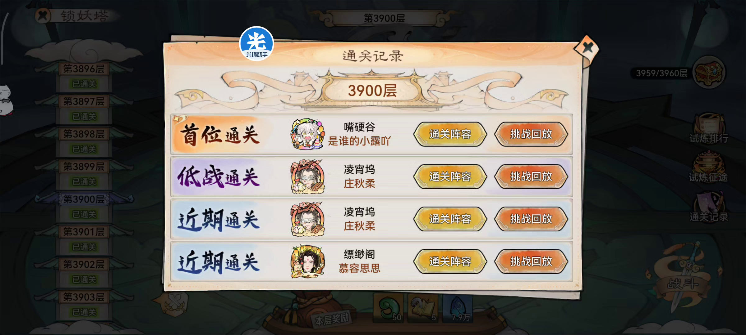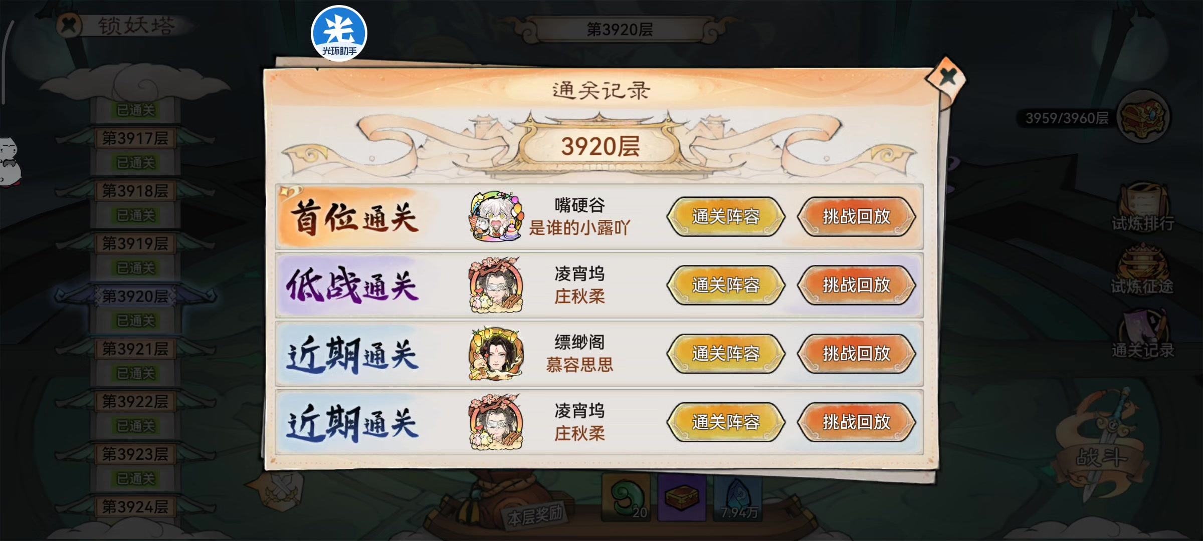 这关要高命中把前排两个复活怪化蟾打死,这样他们复活不了(看运气,挂连点) 小唐(养魂木)魂归凤魂堆抵抗站前排 五行扇 龙人(龙血玉)地藏刑天堆抵抗站前排 永夜 阿离(红无常一阶丝)山海烟花 笔刀 天火蛊(龙血玉)魂归凤魂 笔刀 五行蛊(养魂木)魂归山海 笔刀 三个蛊堆命中叠buff 另外这套把天火蛊的龙血玉换成养魂木我打掉3960凤凰一条命,你们练度比较高的蛊队可以试一试这个阵容打3960[表情_微笑]