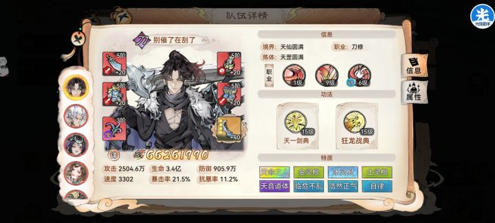可能我们仙域比较曼巴,才刚刚开十一阶。配置确实挺穷的,不过能打过就不继续投入了,反正我们服开十二阶还早,打到12阶的时候,差不多金叶子也出了。龙人打仙虚只能说还凑合,不强,变龙影响放天一和叶子,同样带天一狂龙叶子的话,伤害比野人刀修还要低一点。我这个龙就是当个地藏位,然后平a补点伤害,实际上没啥用。说下仙墟思路仙墟估计是战力压制,非常难暴击,仙墟怪的防御非常高,动一下掉两层负面,仙虚只有一