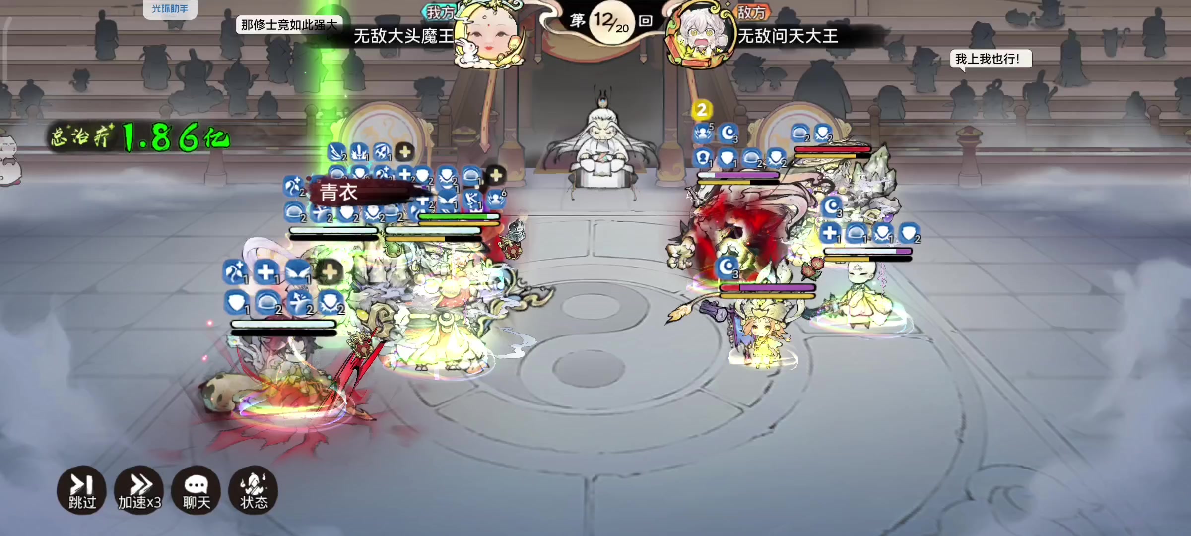 首先羁绊是猴替紫霞抗伤,对战对面韩立三连打死紫霞,猴有禅被动不败没死,后来紫霞复活,又被揍猴触发残火,结果直接被秒杀![表情_吐] 就问为啥不败能生效,残火就生效不了?[表情_吐]