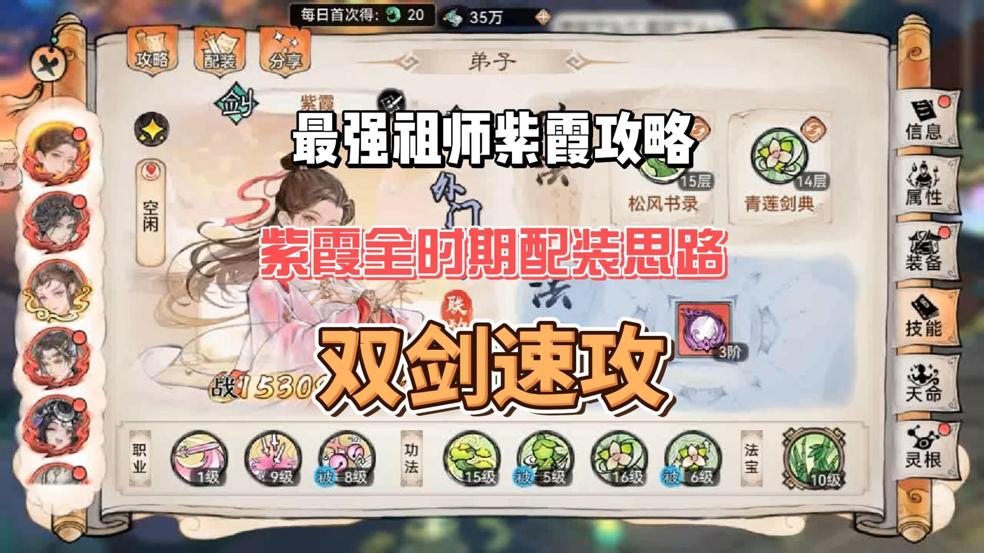 最强祖师紫霞攻略,全时期配装指南,双剑速攻演示。双剑阵容强度和以前没有强很多,因此资源有限没必要硬拉哈#最强祖师