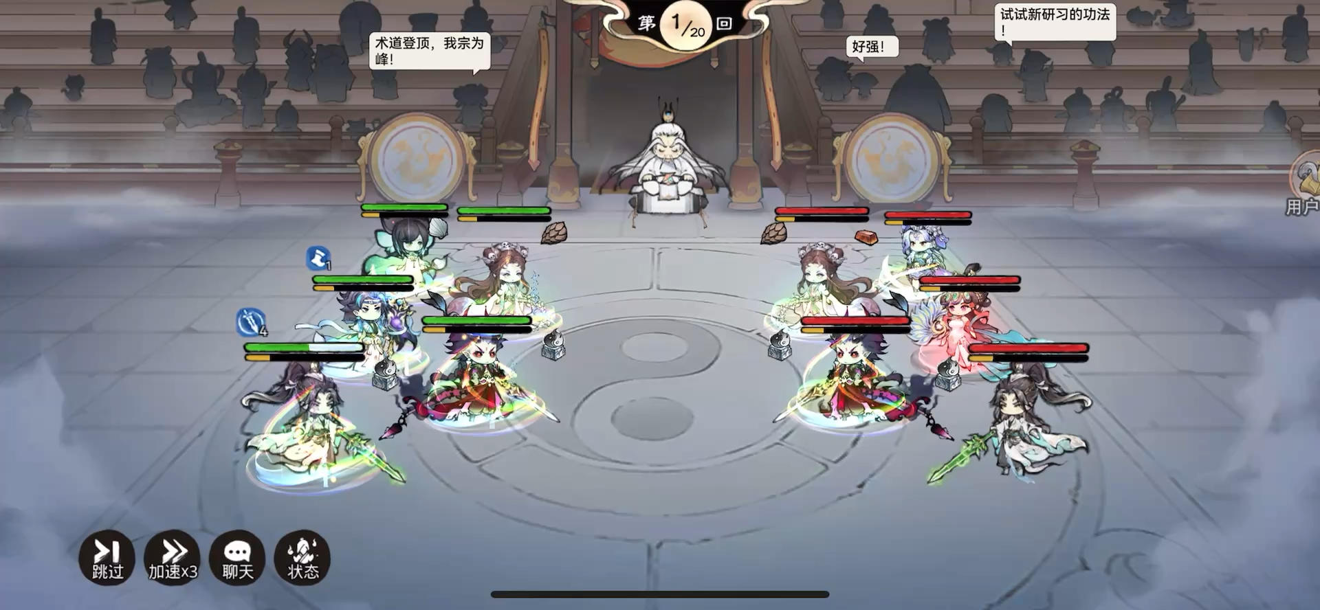 [表情_狗头]主要靠37打输出,其余角色就三小只和老唐。 [表情_狗头]紫霞装备带闪避鞋子一直用就对了, [表情_狗头]唐蝶衣带个能复活的装备, [表情_狗头]其他弟子无脑堆伤害减免就行了。