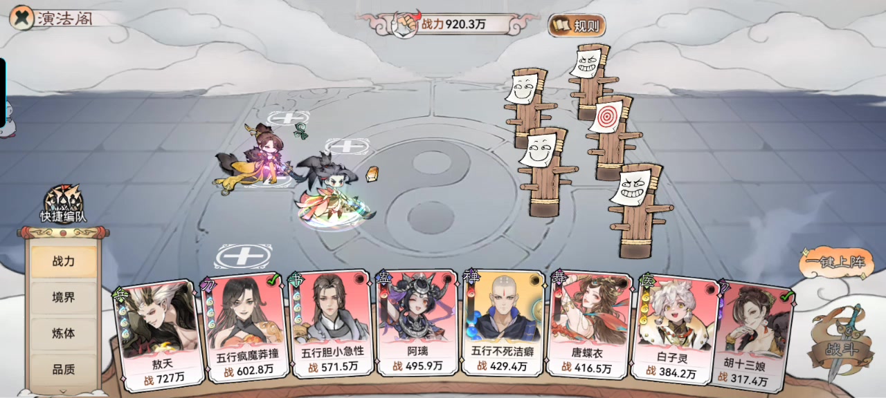 经过几天大量测试功法以及装备法宝,最新研究出一套属于单至尊宝的暴力玩法。 1.功法:狂龙/鸣金(带加蓄力的再动功法),配合天一。 这套功法的搭配是为了让猴子更快地开法宝然后触发天命不败,同时变身后减少使用禅功导致输出不足。 2.装备法宝:修罗套,武器刀;法宝做500蓄力的果子,由于我是修罗套所以炼化的爆伤;本命做青云。 青云我感觉是必备,不然在现在全是肉坦的环境很难打出输出。还有阵图带金阵,输出➕