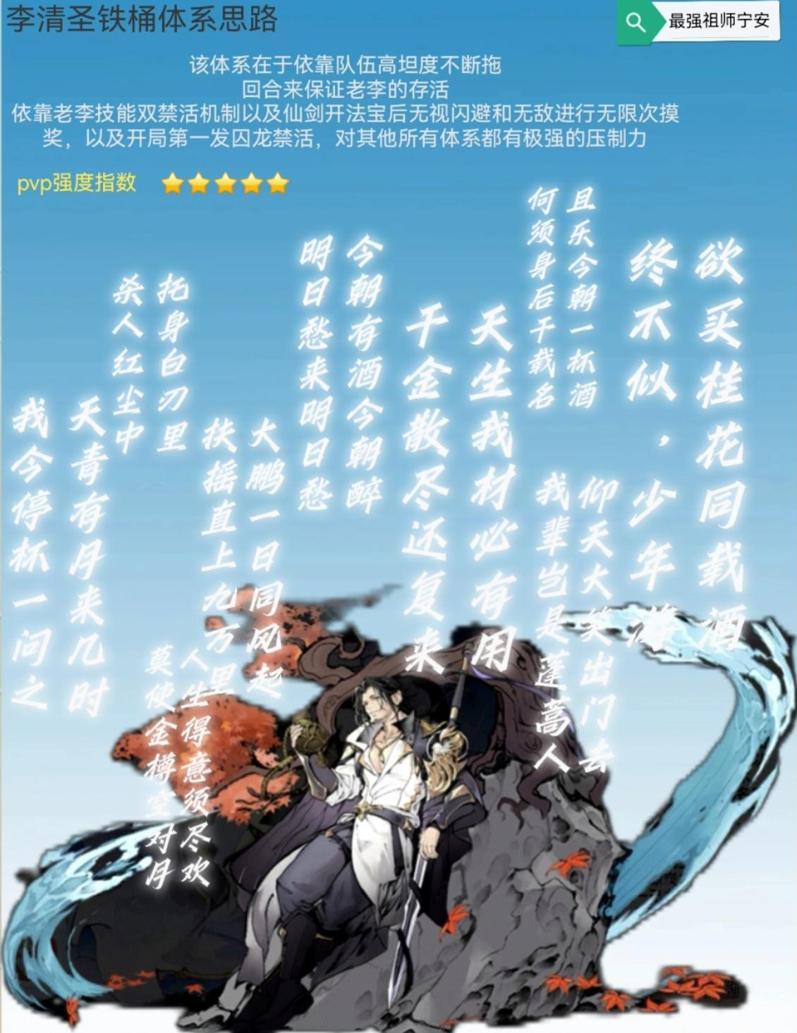 #游戏攻略 有人问upup,精氪能不能玩好李清圣体系?我开局没看攻略抽了老李,但我还想玩李清圣有没有办法?有的兄弟,有的学会这手T0李清圣体系可轻松同战无敌以及越战△ (图二成型队伍站位,新区抽取顺序看结尾)弟子养成 🔴1、李清圣培养(二阶天命觉二开启强势期)转仙,双龙阵,修罗套,词条主攻击副爆伤暴击率功法:囚龙+青莲本命法宝:无常,主高阶木用四阶铁技能灵根:变异木系灵根,洗对应技