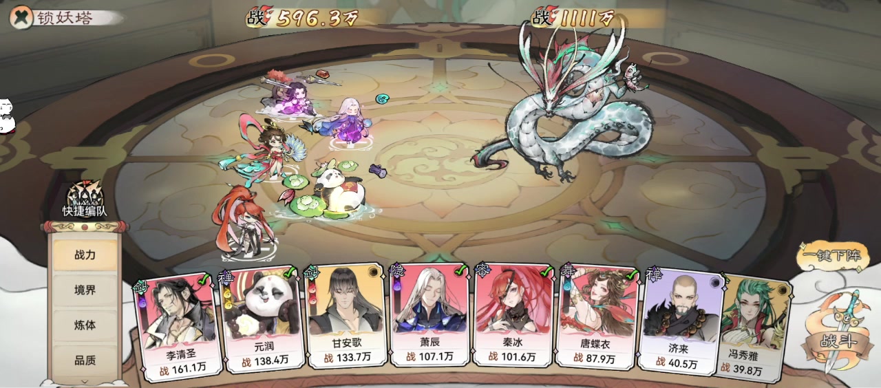 猴子:无常胚子 法宝砂(现在出四阶了看个人需求) 凤魂,撼岳 阿狸(上buff配合猴子无常让猴子打出更高伤害): 因为猴子练度有限,伤害也有限所以苦思冥想提升猴子打的输出。 法宝:带的是四阶藤全炼化火果为了命中更好的上buff (用四阶藤主要是有伤害加深提高猴子输出上限!没有可以其他地方找补比如加爆伤的大荒,还有加队友伤害的功法自己可多看看技能效果。或者辅助带风灵歌决等其他加蓄力的。提高主C放法宝