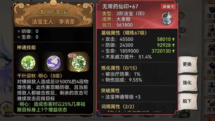 #游戏攻略 怎么给配方不好的胚子上想要的属性?怎么花费最少资源让主C实战能力最大化?相信对大多数玩家而言,法宝重练的作用一直没明白。那么本期跟紧宁安的脚步,宁安带你玩转法宝系统———————————————————————△本期重点法宝重炼教学!!(不会建议反复学习)△总结概括:本命重炼,第一套做一个炼化属性拉满的主法宝,第二套做一个五行威力拉满的主法宝问题:以下法宝原胚为例,假如我想做