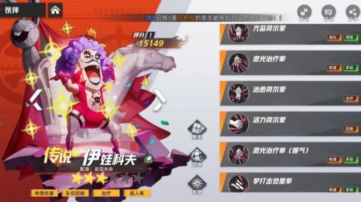 代号伙伴这游戏中,输出型的伙伴分成两类,分别是物理输出和属性输出,虽然说传奇(SSR)伙伴才是天花板,但是伙伴技能太吃天赋点,所以平民玩家开局建议每种类型的SSR伙伴只养一个。而无上挑战15关,就注定每个玩家至少要养两个物理输出两个属性输出的伙伴。开局的时候除非运气好,否则一时半会是很难把物理输出的SSR养到4星的,这时候物理输出可以主培养索隆,因为索隆碎片获取渠道较多(寻宝、祈愿、竞技商店)、