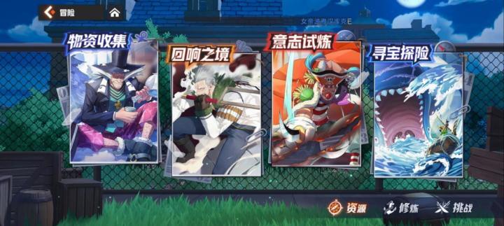 这是一篇各玩法产出资源的总结,如果你不知道某些玩法的作用,某些道具的来源,可以看看做一个参考1.启航伟大航程主要就是体验剧情关卡,重复打就给500贝利,没有重复刷的价值激战浪潮,是需要通关主线剧情后的BOSS关卡,主要产出各个阶段的天赋升星的突破石,以及回想升星突破的回想笔记。三星通关后可以扫荡资源经验副本,产出海鲜料理,用于提升伙伴等级.简单的清理小怪单人关卡,可以扫荡贝利副本未开放
