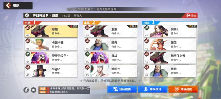 海贼王手游中唯一一款12人同时在线攻略BOSS的副本,该副本分成三队,每队四人,共计12人,副本共有5关,每一关都有三个小关卡(第四关为共同关卡),每个小关卡由三个队伍队长自行选择(可两队选择同一关卡),三个小关卡通过之后方可进入下一关,所以在创建房间的初期,团长至少需要和两队队长沟通好,分工合作(最好打开语音交流),打各自的小关卡,以免撞车浪费不必要的时间。队伍配置:一共3队,每队4人,共计