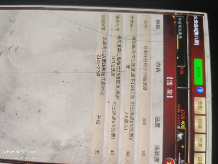 1∶刷商店,空白密集,白酒,大丸纯酿是必买的。2:看广告领奖励,不看不是自己人,小心被人打。3:活动的任务必做,给的东西不错,二层武功,蓬莱,破禁。就冲我这破碎的屏幕各位姥爷看完点个赞吧,救救孩子