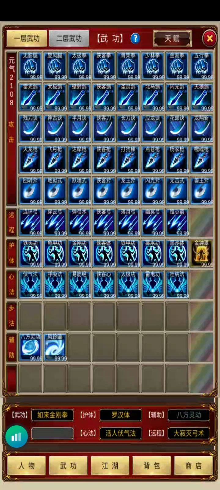 1,注意事项:进入游戏把主线任务,每日任务完成(尽量不要快速完成),奇遇任务30之前,除了没有的一层护体,其他的建议能不做就可以不做,顺带进群把新手礼包和师徒礼包给领了,2,20岁前练功:进游戏先把有武器的侠客武功练满,顺带把侠客体装上,可以吃一个双倍经验丹,速度更快,打怪推荐简单零星白虎,挂机时可以看看商店(可以刷新9次)有没有风铃旋和八方灵动,有条件的可以吃几颗武功丹,目标元气值80,任