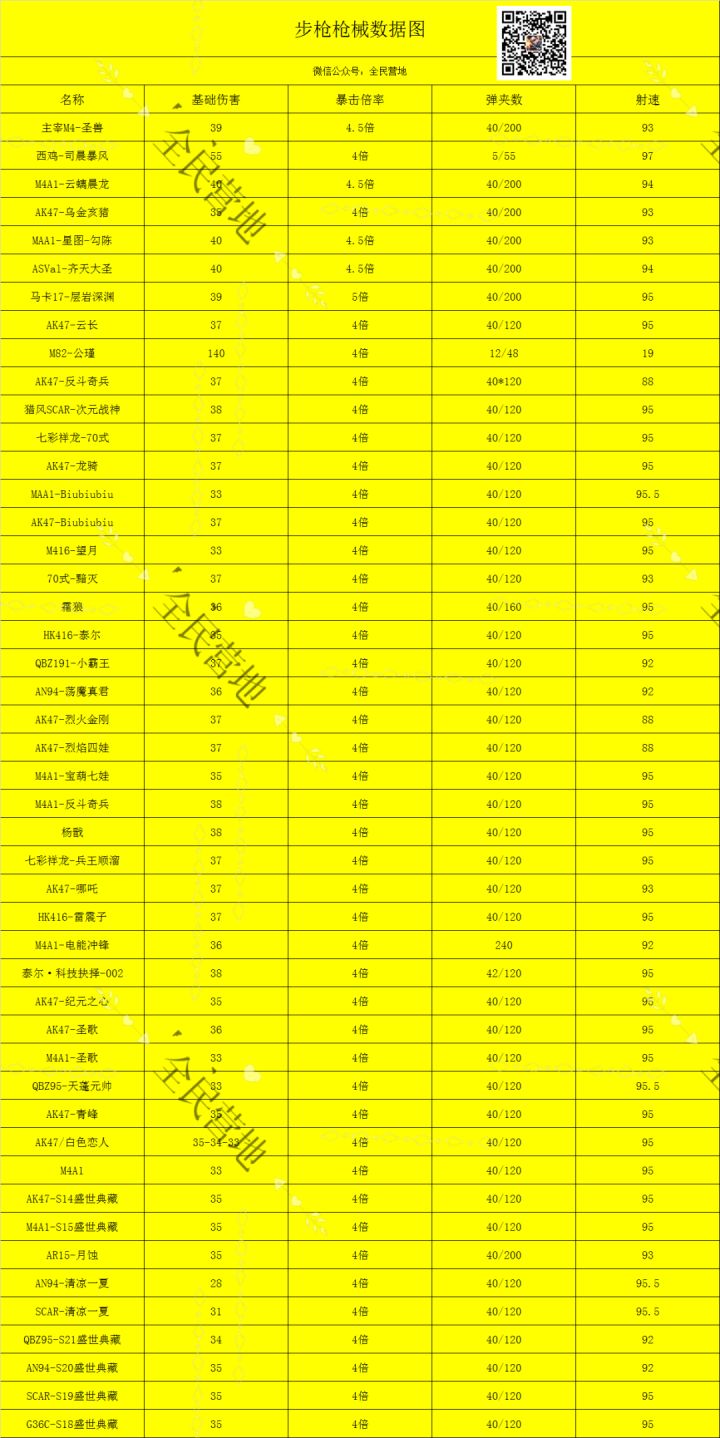 【全民攻略】步枪数据图!S级以上所有的枪械数据 都在这里了!!