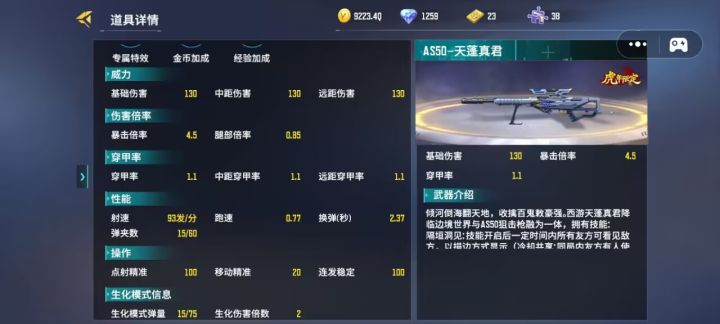 各位全民枪神的玩家们大家好,我是创作团绾星坠夜,今天给大家带来的是AS50-天蓬元帅的测评,希望可以帮助到还在犹豫观望的小伙伴们。废话少说,我们直接进入主题。【数据讲解】 我们先来看一下这把枪的数据,基础伤害130,中远距离无伤害衰减,爆头倍率4.5倍,腿部倍率0.85。在没升级的情况下,一枪就可以带走穿着未来甲的敌人,打腿也不例外。虽然是2022年的老物件,但是各方面数据依然不逊色于当下的s
