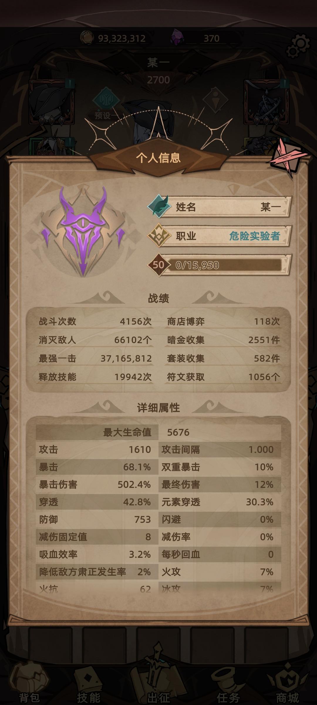 今天是开放神器版本第三天,大家神器也都做出来了。简单讲一下我个人对兽皇这个职业的理解。 我对属性的思路就是能堆血量就堆血量,自己的技能伤害,和宠物的伤害,都和血量有关,血量收益非常高。硬性要求只有穿透100,目前我的肃正虽然只有60多,但是因为我的衣服还没有升阶,明天升阶后会多20的肃正,再加上神器进图根据会给⅓暴击的肃正,肃正会到100以上,刷图或者深渊都完全够。 然后看看技能 技能选择方面野兽