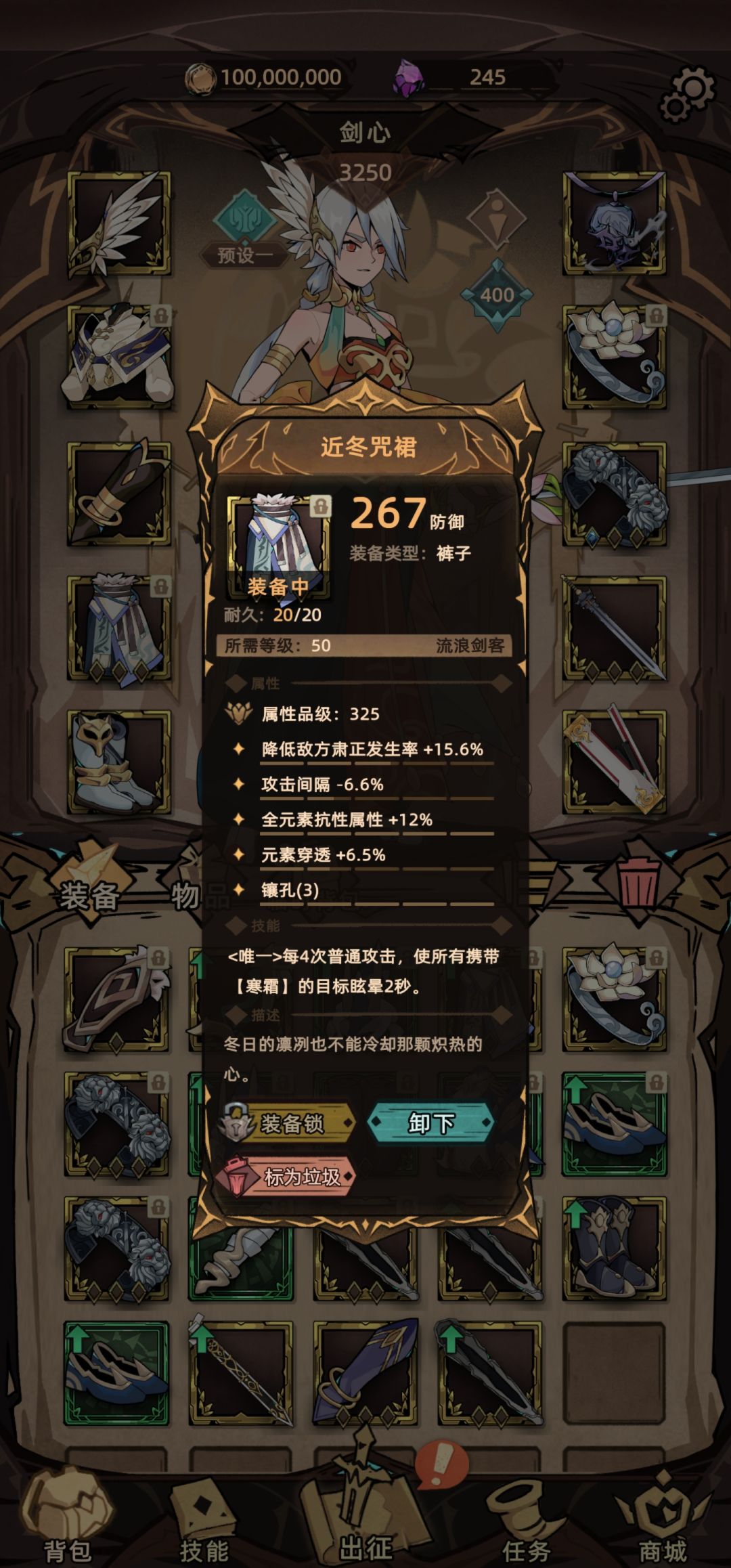 剑稳第一波稳定晕 裙子为了稳控 因为塔带的是冰所以每一波都有寒霜 配合头可以补控 防止翻车毕竟不是人人都连点器 衣服和副手配合头 后期塔怪物血量高补刀伤害很可观