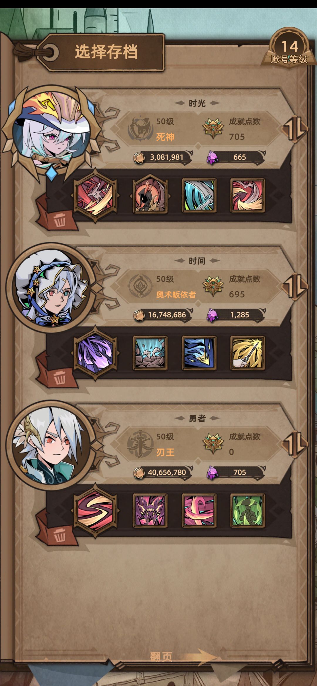 刚玩一段时间 新人建议第一个选死神,死神推线快,成型低,能为新人带来一个凉好的体验 选完死神开始后 就推主线,打完古伦王城外后,可以去支线,有一个初见,完成后,会解锁外传地下花园,进去刷关就行了,可以快速50级(前提是看广告把状态拉满)(也可以去买个免广) 技能随便点就行,50后重制,按召技能图点 接下来就是刷准备(图片不够会发在评论里) 武器:浮华十字镰 死神永远不换的主武器 下面的装备不一定,