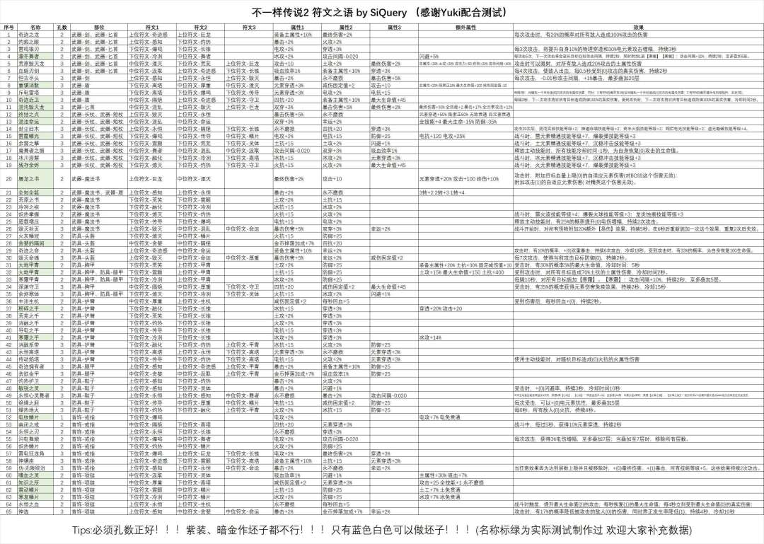 必须是蓝色或者白色胚子 必须按顺序装上符文,装错没有用 装错-50石头只是保装备,符文还是会没 符文之语装备继承原装备属性,也就是刷 多词条+多孔+好装备技能 的装备是最好的 建议幸运套刷装备,300幸运值上位掉率0.02%,2550幸运值掉率0.12% 刷内城关卡1、5 大量蓝白装备 刷元素试炼4 暗金装备+元素箱(升级元素台) 正位逆位都有上位符文袋子可以买,价格也ok 1.2.1 符文之语可