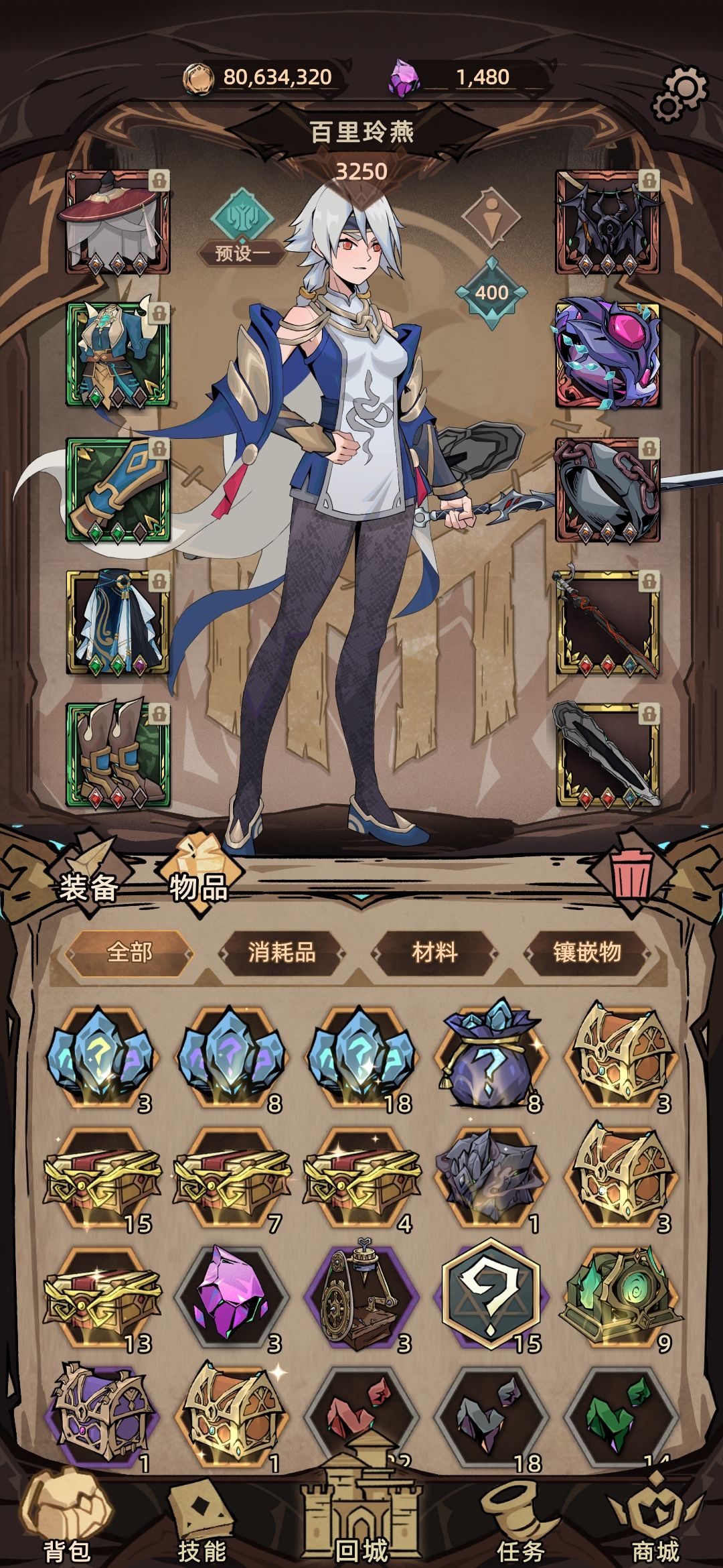 两个搭配可以减1和减2,因为套装5的效果我不是很需要。所以我这样搭配,第一个是刀,第二个是剑。 因为没什么词条看得上,所以就跳了这几件技能还不错的胚子造符文了。 刀物理,剑电源素。