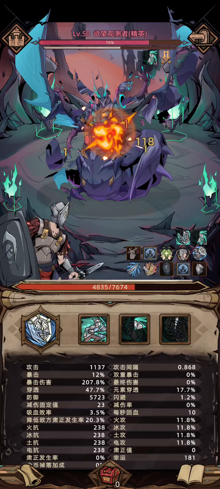 可以看到,这个boss在高14级的情况下,在我无敌的忏悔骑士面前,也只是险胜