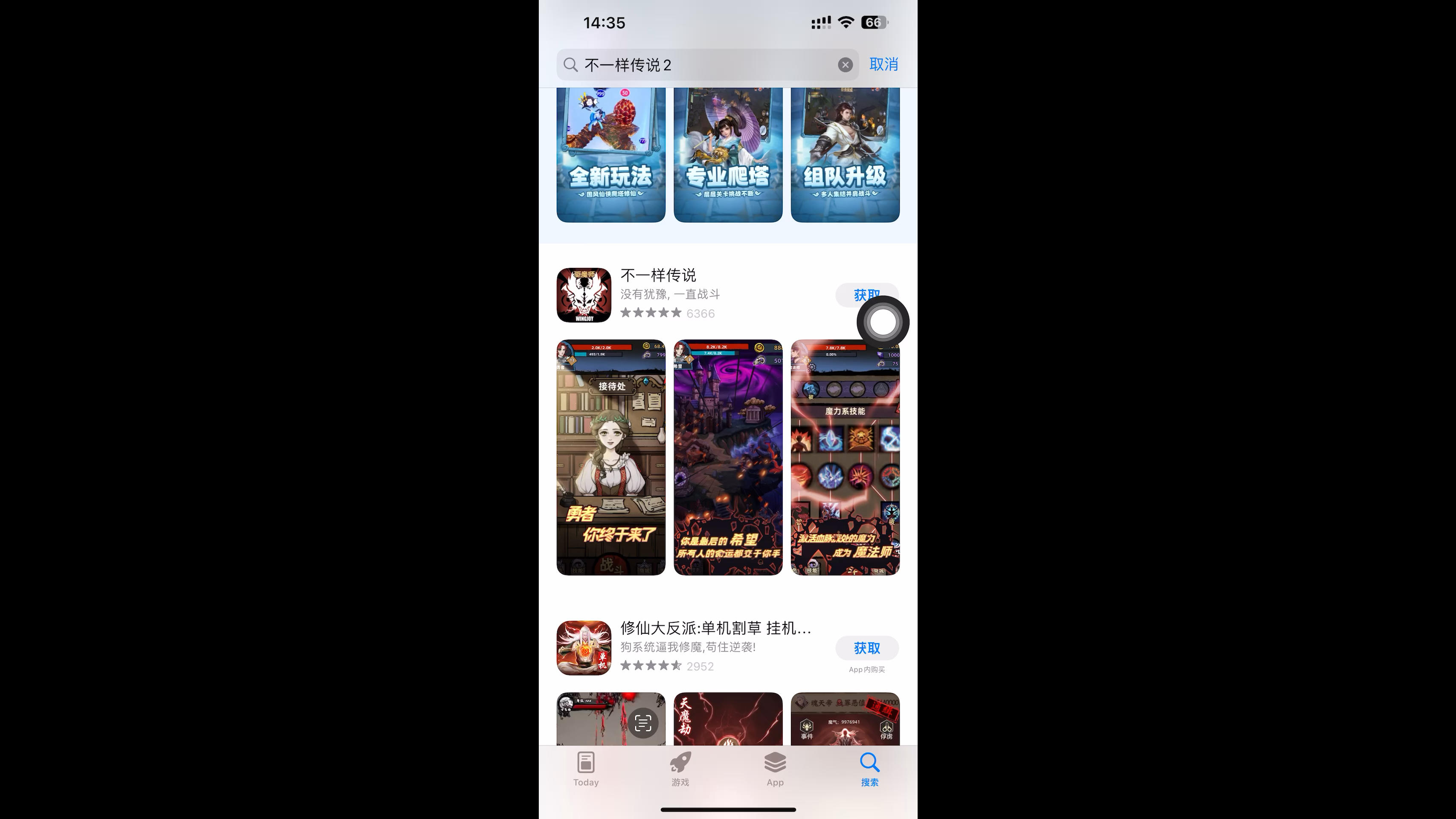如图,搜索不一样传说2,搜索结果是不一样传说,然后下拉更多app,可以看到不一样传说2,可以下载