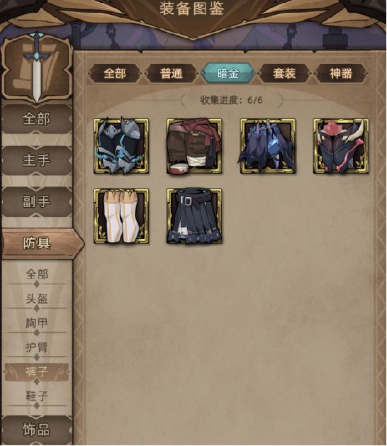 魂术师装备图鉴-腿甲本图鉴按【暗金】→【套装】的顺序分类。目前符文之语防具为各职业通用,因此本帖中符文之语篇内容转移到【通用装备图鉴-腿甲】,请通过装备图鉴总目录跳转。本系列图鉴中,左下方表示装备词条,右下方表示强化属性更多图鉴内容,请前往 装备图鉴总目录 (一)暗金篇2024年3月23日,暗金腿甲共6件。1. 死骑的臂铠掉落地点:魔界腹地-13;关键词:暴击、爆伤、防御、免伤