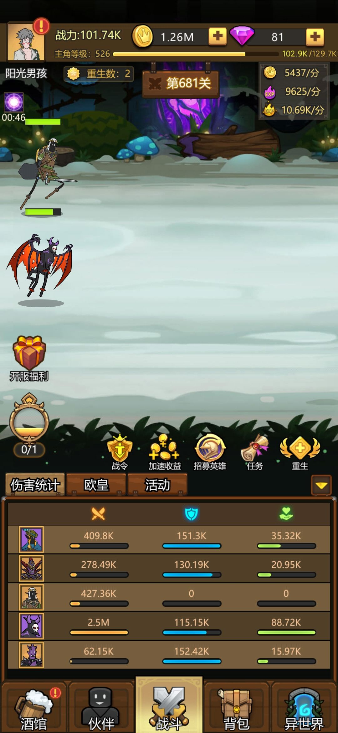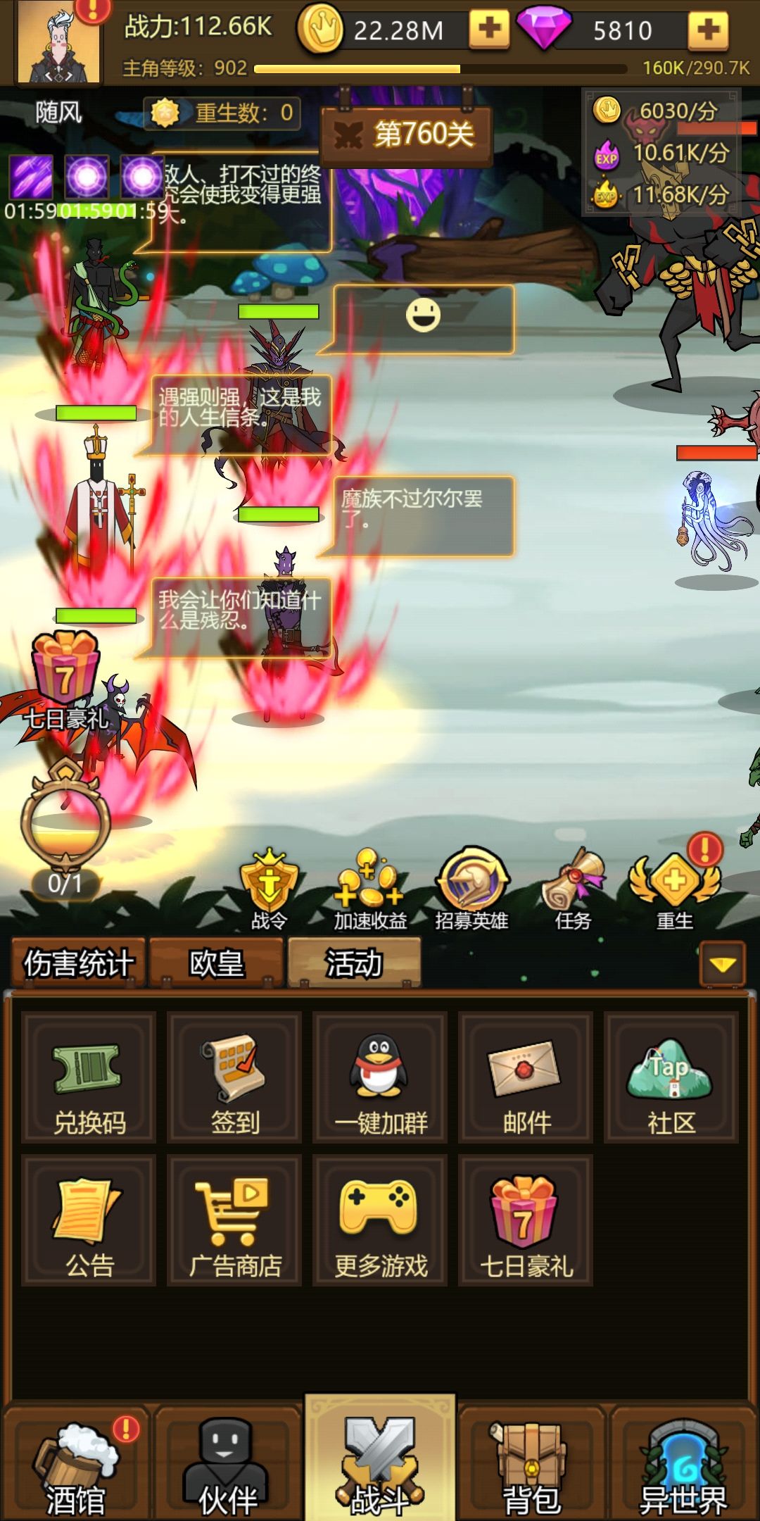 1, 这游戏挂机五分钟就会出装备,最少挂个五分钟,然后进去不满意不要看视频领取,大退重新进,获得装备会刷新 2,加速收益同理操作 多挂机! 多挂机! 多挂机! 拿双倍奖励,打不过就挂机拉等级 目前0转570关卡了,刚过了560,主页有0转阵容站位搭配供参考🙋