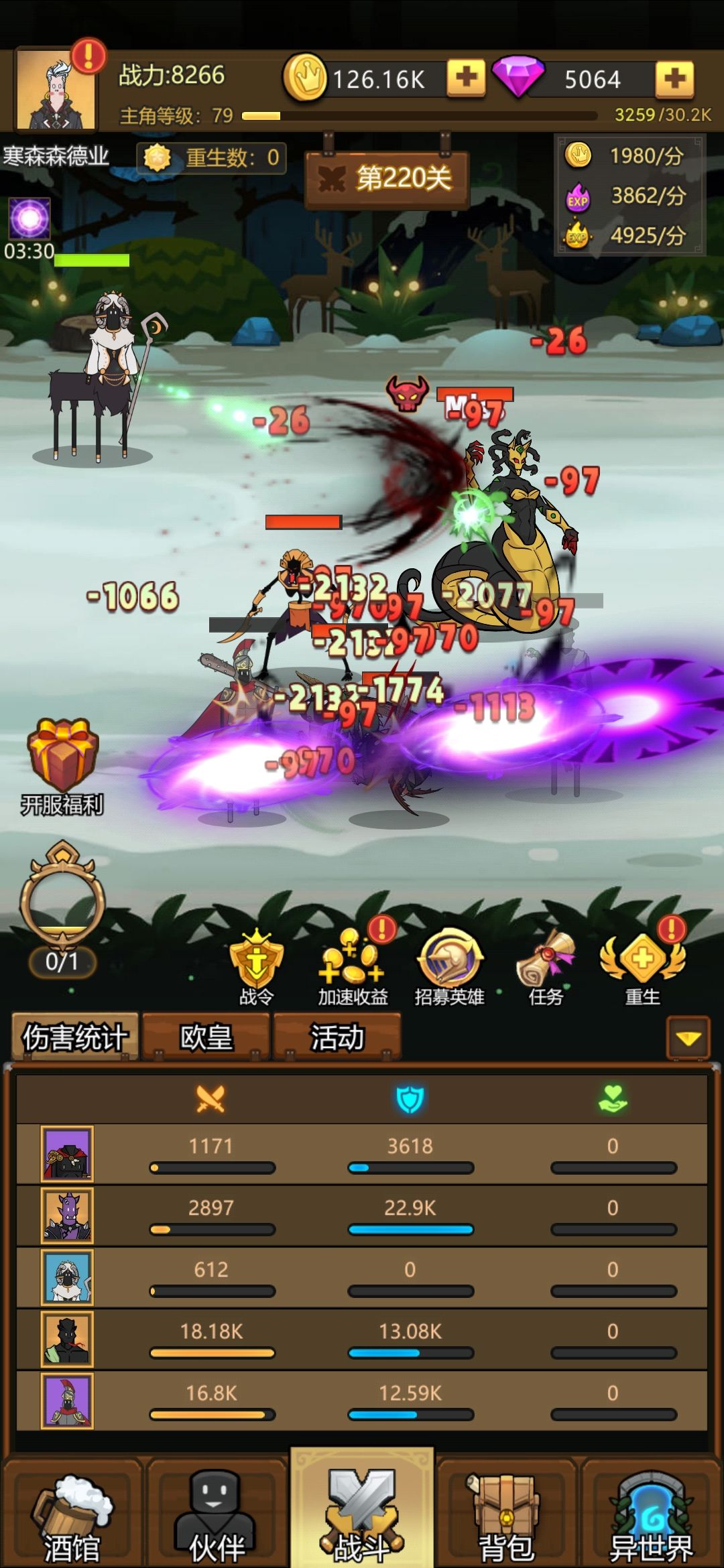 魔人三技能能加攻击力,在魔人死去后消失,打不过boss后会退回上一关,然后魔人血量低于30%多一点时点打boss,在去打boss途中魔人不能死,不然buff会消失,这样我们就可以全程保持魔人加攻buff。(下图人物的红色光环就是魔人buff)