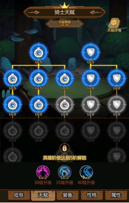 1.天赋 天赋等级显示的是所升级的天赋等级之和,点击右上角天赋详情的小图标,我们就可以看到该英雄的天赋详情以及技能效果。这里需要注意的是技能等级升级不是跟英雄等级或英雄阶级挂钩的,而是跟天赋等级息息相关,天赋等级达到相应等级技能等级就会自动升级。 天赋等级升级需要的材料天赋粉尘,其获取途径有在异界宝地里的飞升之地(如图),广告商店等,后续也还会有更多获取途径。 2. 性格 我们以图片中的骑士为例,