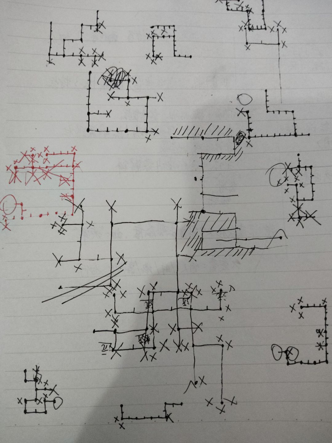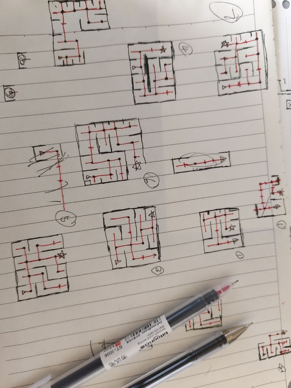 图示法上大分! 因为是边走边画所以很潦草。 (两组脚步声算一段,(一组是半段? 每次莫名其妙通关以后就开始恐慌。 △是起点,☆是终点 游玩体验:刚开始很迷茫,因为不知道怎么样算是走了哪个方向,我以为需要一直拨动才会走,实际上向一个方向拨动一下就会一直走到墙或拐点。以及,在走动过程中最好不要改变方向,容易迷路。如果记忆力足够好,也可以尝试不画图。(每关走路的声音是单一的,并不会根据离终点的远近变化,
