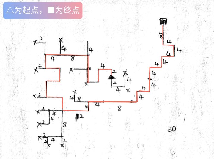 第十关详解:✘:起点★:终点 ᵒ :岔路口 -:步行距离(一声视作一步)