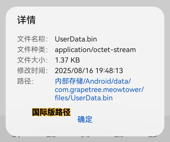 打开新大陆了,喵喵妙妙塔的存档国际版和大陆版是互通的!朋友们,咱们再也不用因为想玩国际版的更新而重头再来了! 先放结果,p1是换完存档后国际版打开后的样子,进度就是我在大陆版玩的进度。p2是国际版存档路径,p3是大陆版的路径。 容我废话一下,我实在是太激动了。起因是我最近才发现有国际版,但是又不想重打进度,然后想起曾经玩游戏有大佬教过某个游戏手机版和电脑版存档是可以互转,然后就开始我创造性的幻