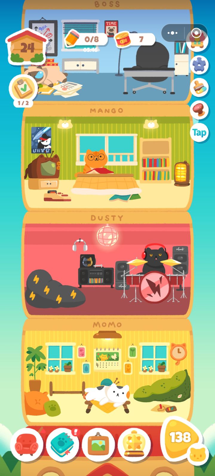 可以考虑添加互动吗,比如可以把坐在某个位置的猫猫拎起来放到另外的位置(看到他们坐着,好想把他们点一下,让他们躺地上躺着窝着,还可以加点猫猫串门的小互动啥的#喵喵妙妙塔