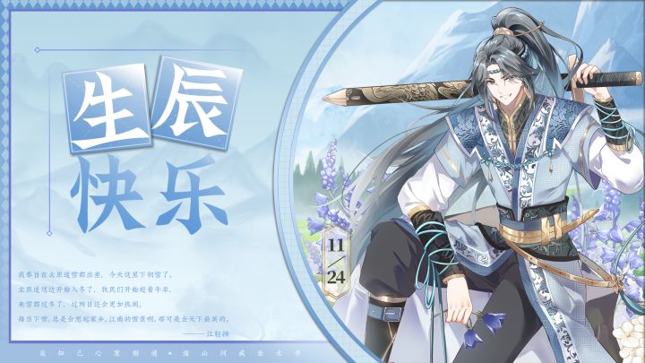 嘿,最近过得怎么样?我奉旨在北原道雪郡出差,今天这里下初雪了,而且刚好是我生日。有本地的牧民宰了一只白髯公,邀请大家去他帐子里举行宴会,我写完这封信就去。北原道这边开始入冬了,牧民们开始赶着牛羊,来雪郡过冬了,过两日还会更加热闹。每当下雪,总是会想起家乡,江南的雪景啊,那可是全天下最美的。我以前一直和听林说起,可他一个海西人,连雪都没有见过……每次羲都下雪,他都跑雪地里玩得跟疯狗一样,笑死